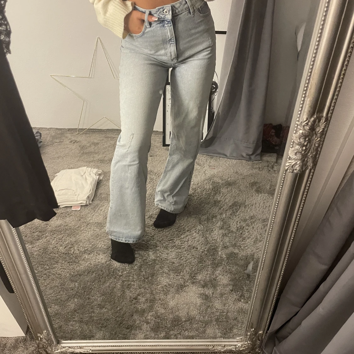 Blåa jeans med slits från pieces. Dem är knappt använda då dem e lite stora på mig. Pris kan diskuteras. Köparen står för frakten. Skriv vid fler bilder eller frågor❤️❤️