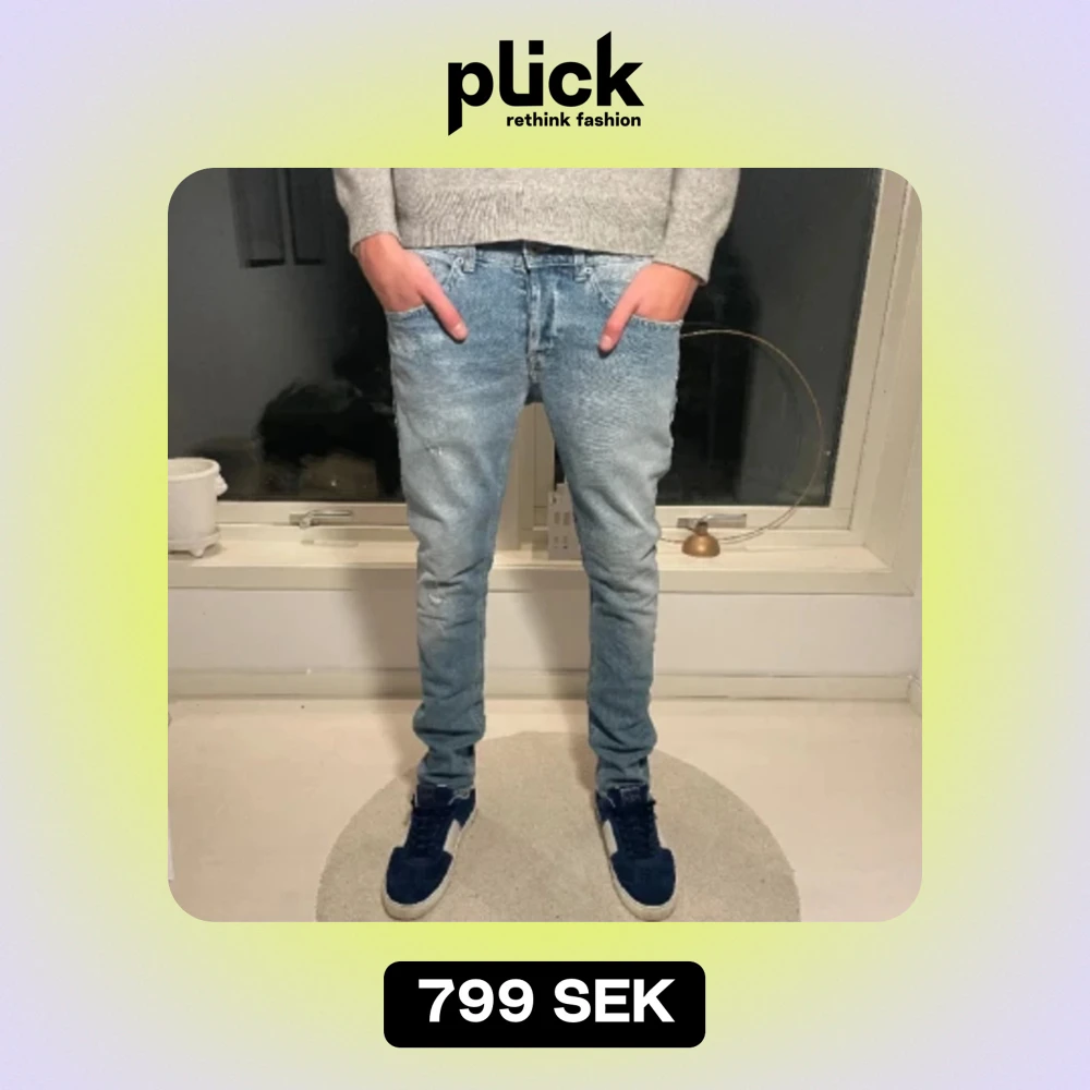 Säljer dessa extremt feta dondup jeansen. Köptes här på plick men passade inte mig, de är i nyskick och finns inget spår av användning 👍🏻Kontakta för fler bilder!