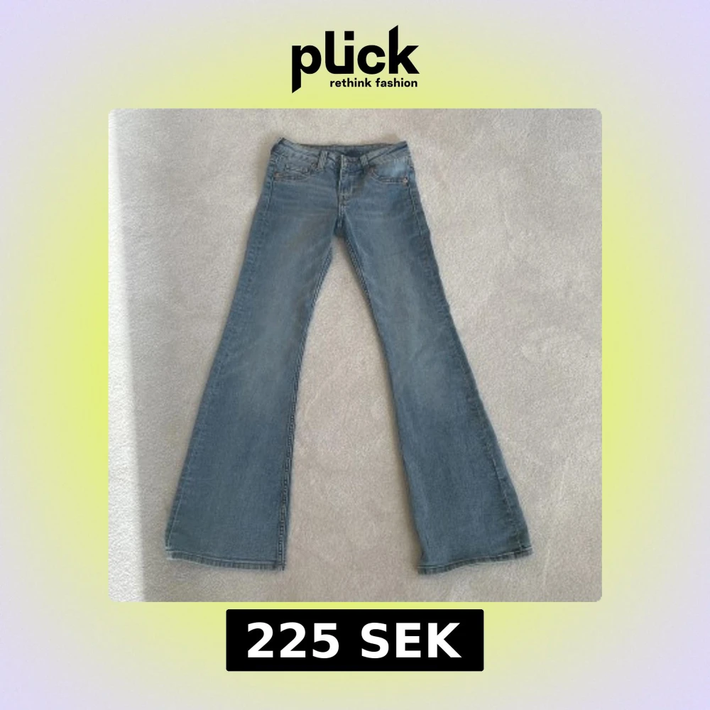 Säljer ett par ljusblå bootcut jeans från H&M Divided. Jeansen har klassisk femficksdesign, normal passform upptill och vida ben som ger en snygg retrostil. Perfekta om du söker lågmidjade ljusblåa jeans nu till sommaren.