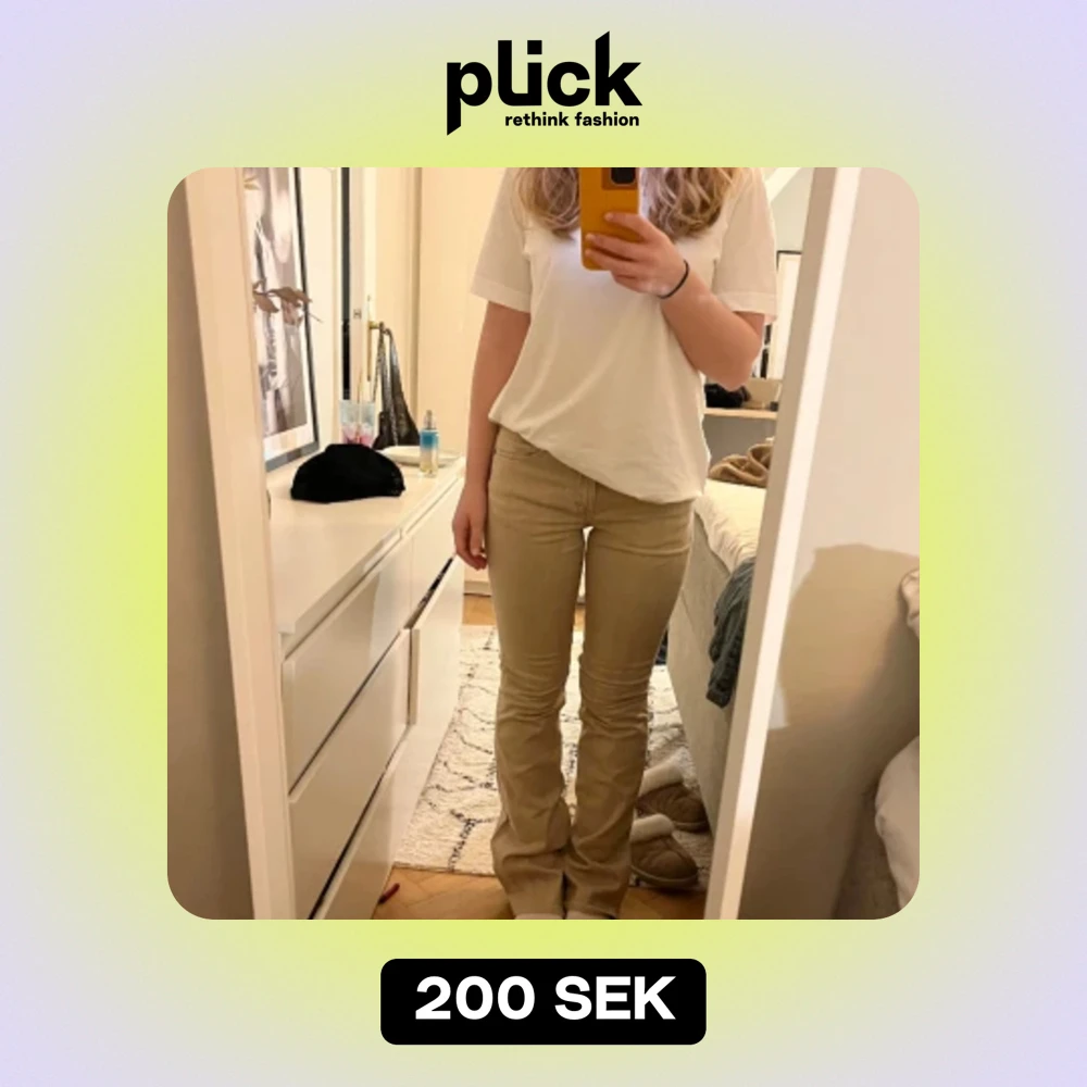Jeans med medelhög midja i en beige färg💕 midjemått: 38 cm innebenslängd: 81 cm