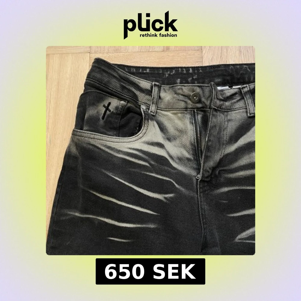 Svarta bootcut jeans från The Ragged Priest med grått zebra-inspirerat mönster och råa kanter nedtill. Jeansen har klassisk femficksdesign, dragkedja och knapp framtill samt en cool detalj med kors-stitching vid fickan. Perfekt för dig som vill sticka ut. Mina favvo jeans som tyvärr ej kommer till användning, orginalpris ca 1200kr