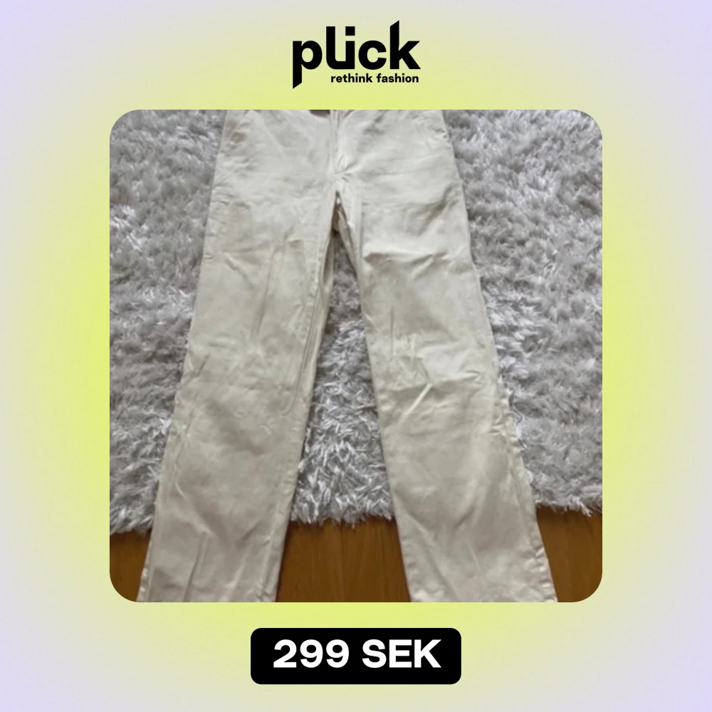 Jätte snygga beiga byxor som aldrig används längre, storleken är one sise men sitter som 34❤️🔥lågmidjade å har vissa defekter med färgen men de inget man lägger märke till eller ser🤗