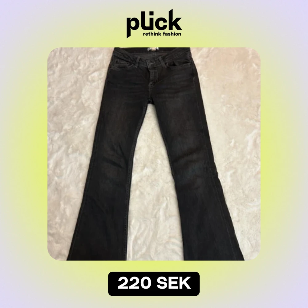 Säljer ett par jätte fina mörkgrå bootcut jeans från Gina som är i bra skick och använda fåtal gånger säljer pga av att de är för korta på mig!