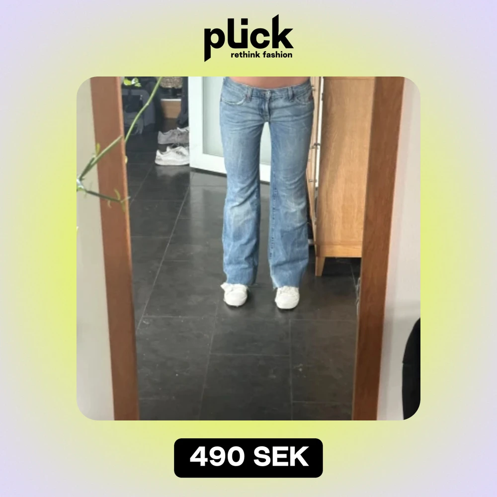 Lågmidjade och utsvängda ljus blå jeans Mått Inerbenslängd 76cm Midjemått 41cm Höjden på midjan 18 cm