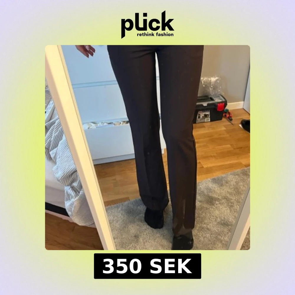 Säljer ett par bruna kostymbyxor från bikbok . Byxorna har bootcut-modell och normal passform, med klassisk midja och diskreta fickor bak. Perfekta för en stilren look.