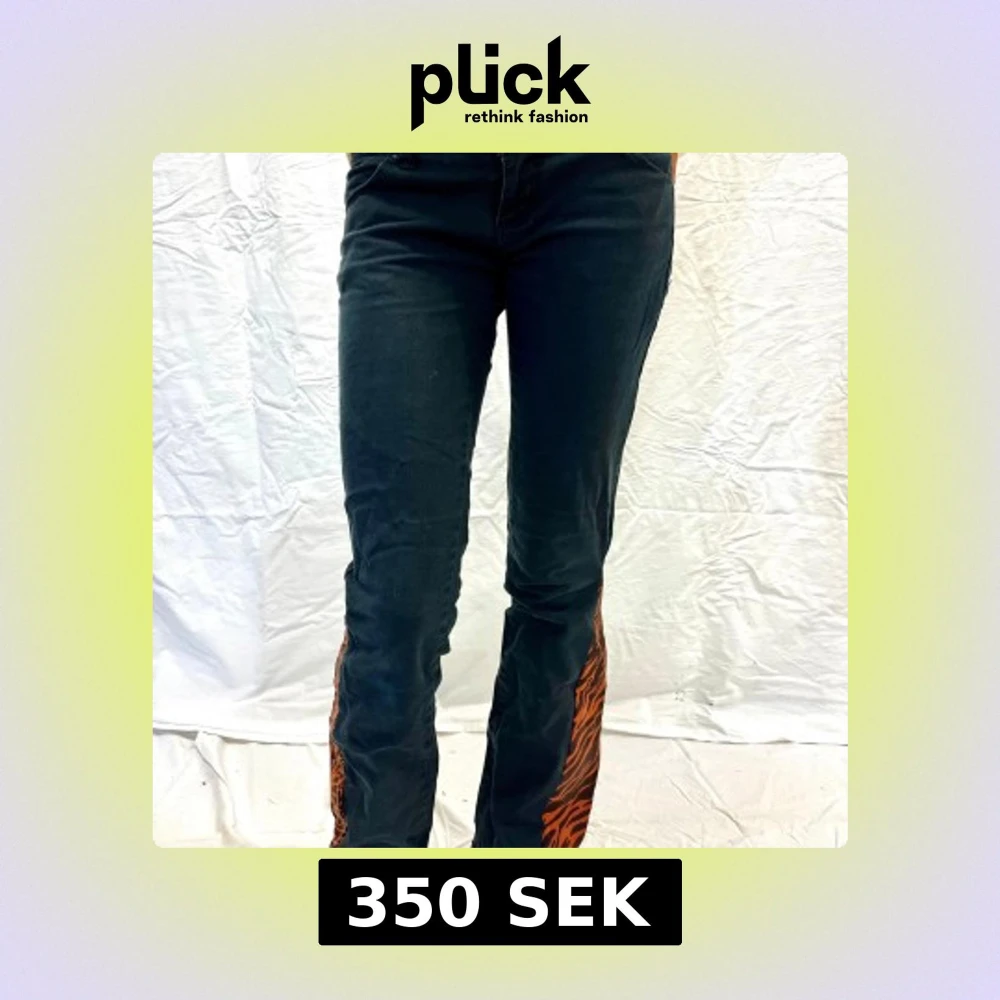 Skitsnygga svarta Lågmidjade bootcut jeans med röd zebra detalj🦓 Perfekta utgångs jeans🤩🔥 Storlek 36 Innerbenslängd 80cm Midjemått 80cm Pris kan diskuteras💗