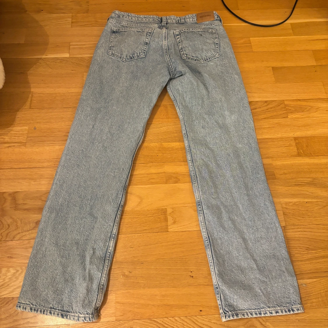 Lågmidjade jeans från weekday, ”arrow low”. Midjemått och innerben syns på bilderna. Köp via köp nu direkt eller Swish, kvar tills markerad som såld ❤️
