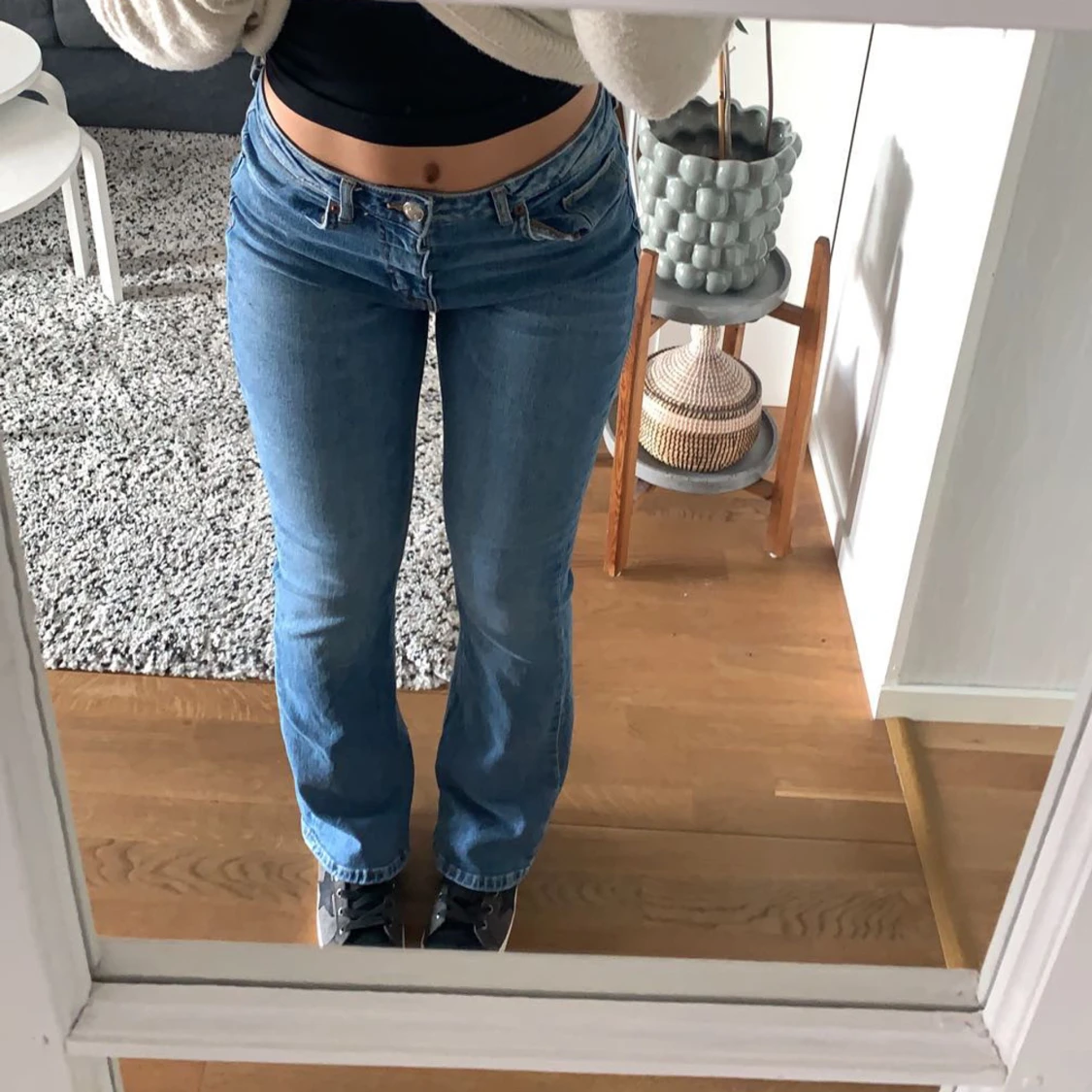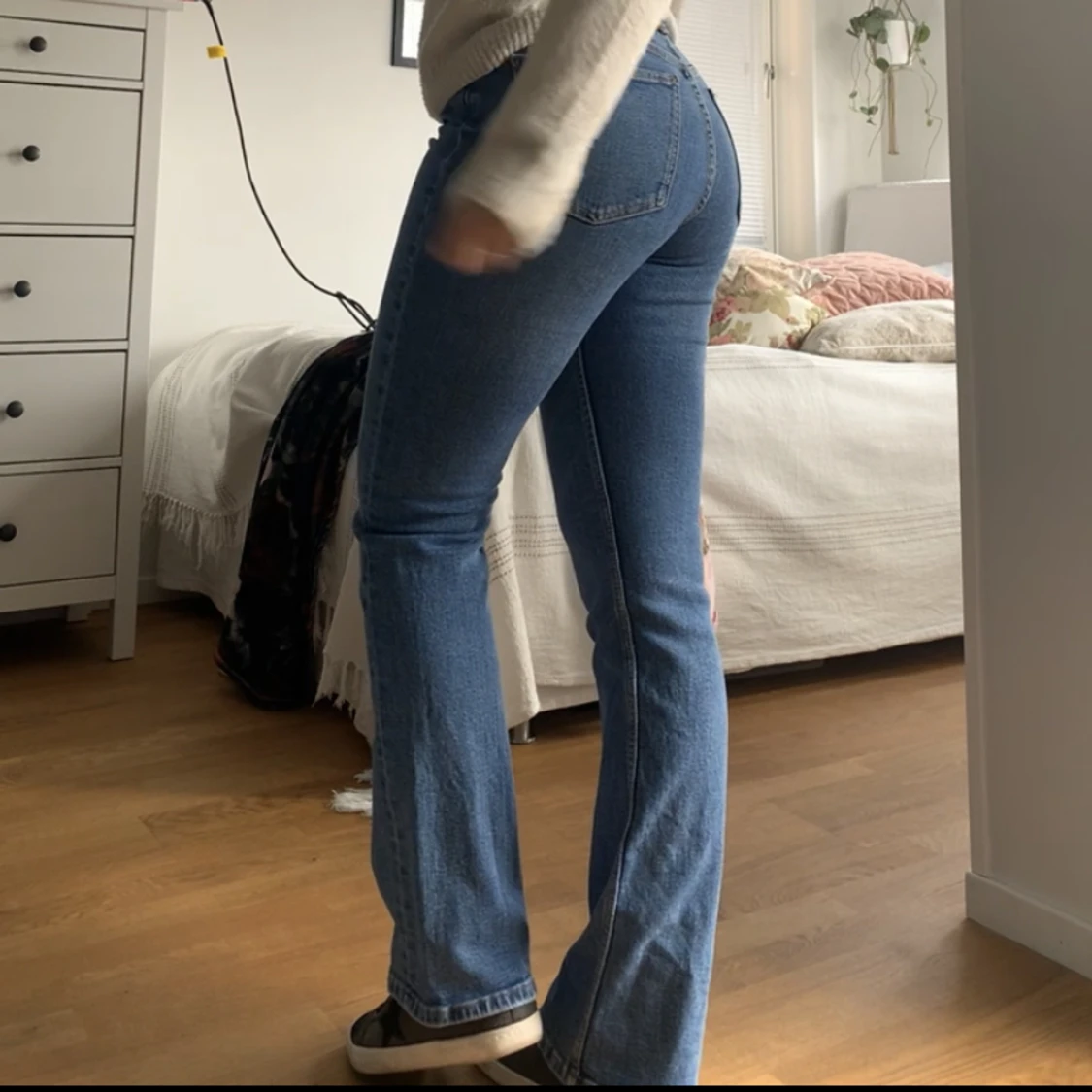 Säljer mina blå zara jeans. Sällan använda (bra skick) lite stora i midjan på mig som vanligtvis har 38!