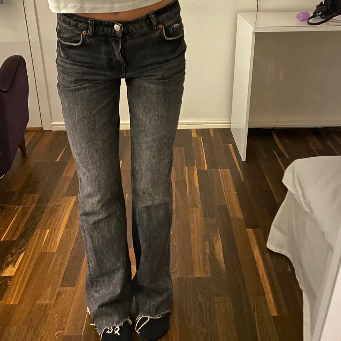 Superfina lite vidare jeans ifrån Zara🤍 Knappt använda så i nyskick!! Säljer ett par liknande i blått🙏🏼