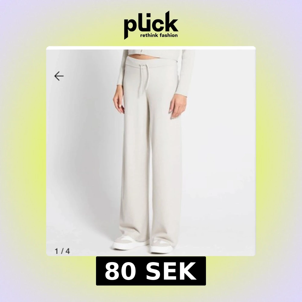 Säljer ett par beige mjukisbyxor med breda ben och dragsko i midjan. Byxorna har en avslappnad passform och är tillverkade i ett mjukt material som passar perfekt för en chill stil.