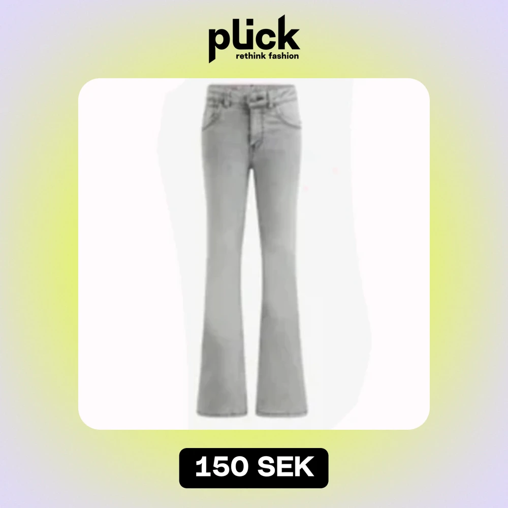 Säljer ett par grå bootcut jeans. De är i använt skick med några synliga defekter, som en liten bula och en sliten söm vid kanten. bulan syns knappt när man använder jeansen. storlek 158 men passar 32