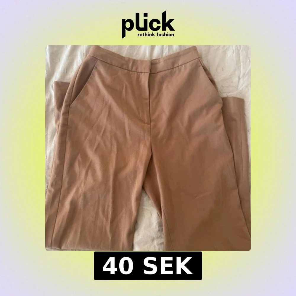 Snygga bruna kostymbyxor med hög midja och raka ben. Byxorna har diskreta fickor både fram och bak samt stängs med dragkedja och knapp. Perfekta för en stilren look.