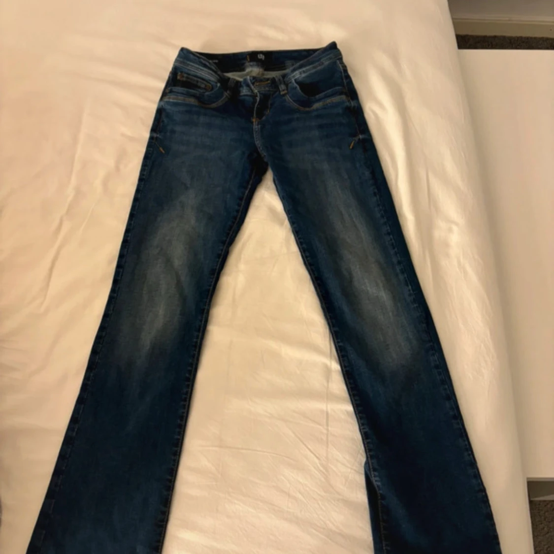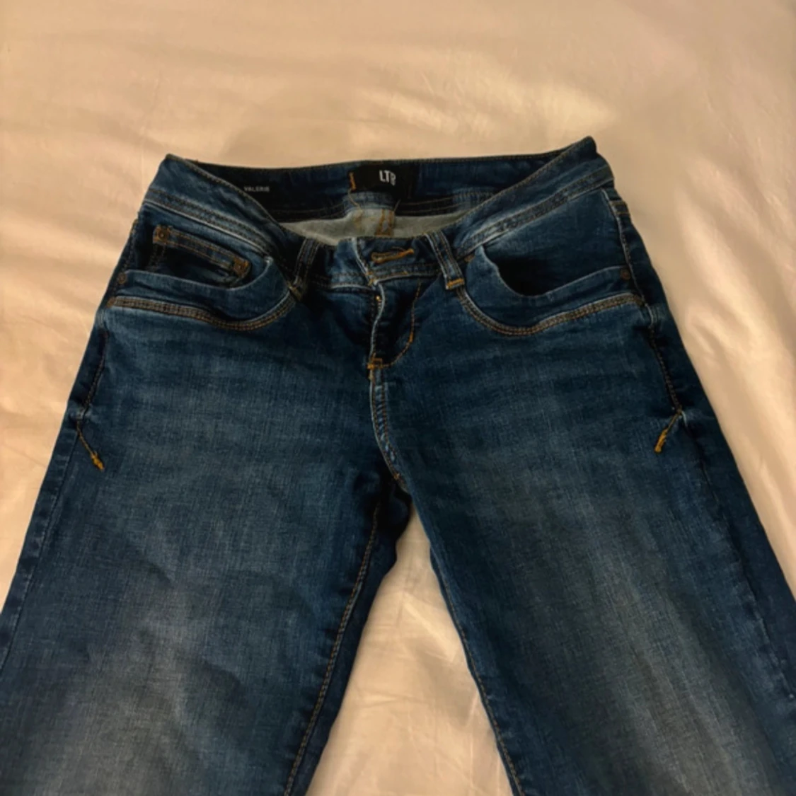 Säljer ett par blå jeans från LTB, modell Valerie. Jeansen har låg midja och bootcut-ben. Materialet är mjukt denim med lite stretch för extra komfort. Knappt använda därav ny skick. Köpa till fullpris på Zalando må