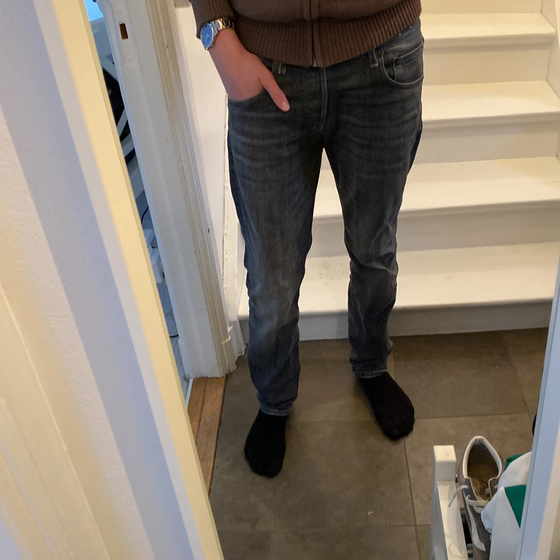 Snygga grå jeansbyxor med en slim straight passform. De har en klassisk design med 4 fickor och knappgylf. Perfekta för en stilren look. Ny pris 1000