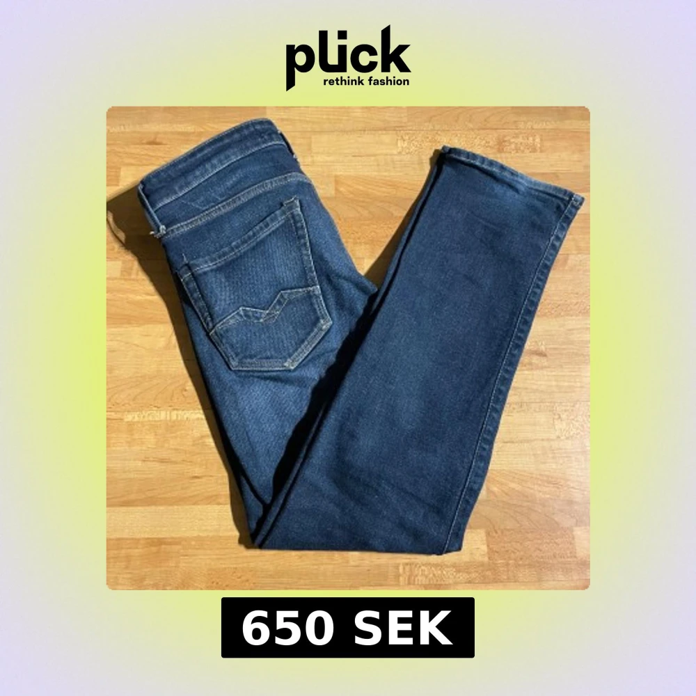 Säljer ett par snygga mörkblå jeans från Replay, modell Waitom. De har knappgylf och Replay-logga på bakfickan. Använts fåtal gånger. Nypris 1700kr. Storlek W29 L30