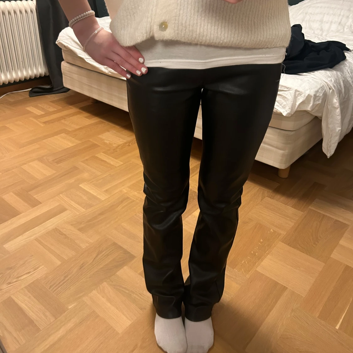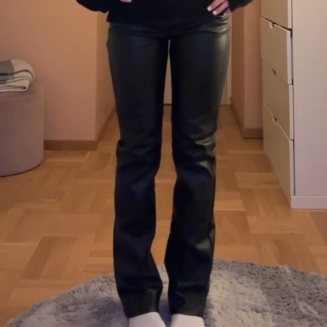 Snygga svarta skinnbyxor med en tight passform. Perfekta för en trendig look och kan enkelt matchas med olika toppar. Byxorna har en klassisk design med raka ben. Skriv för bättre bilder🩷