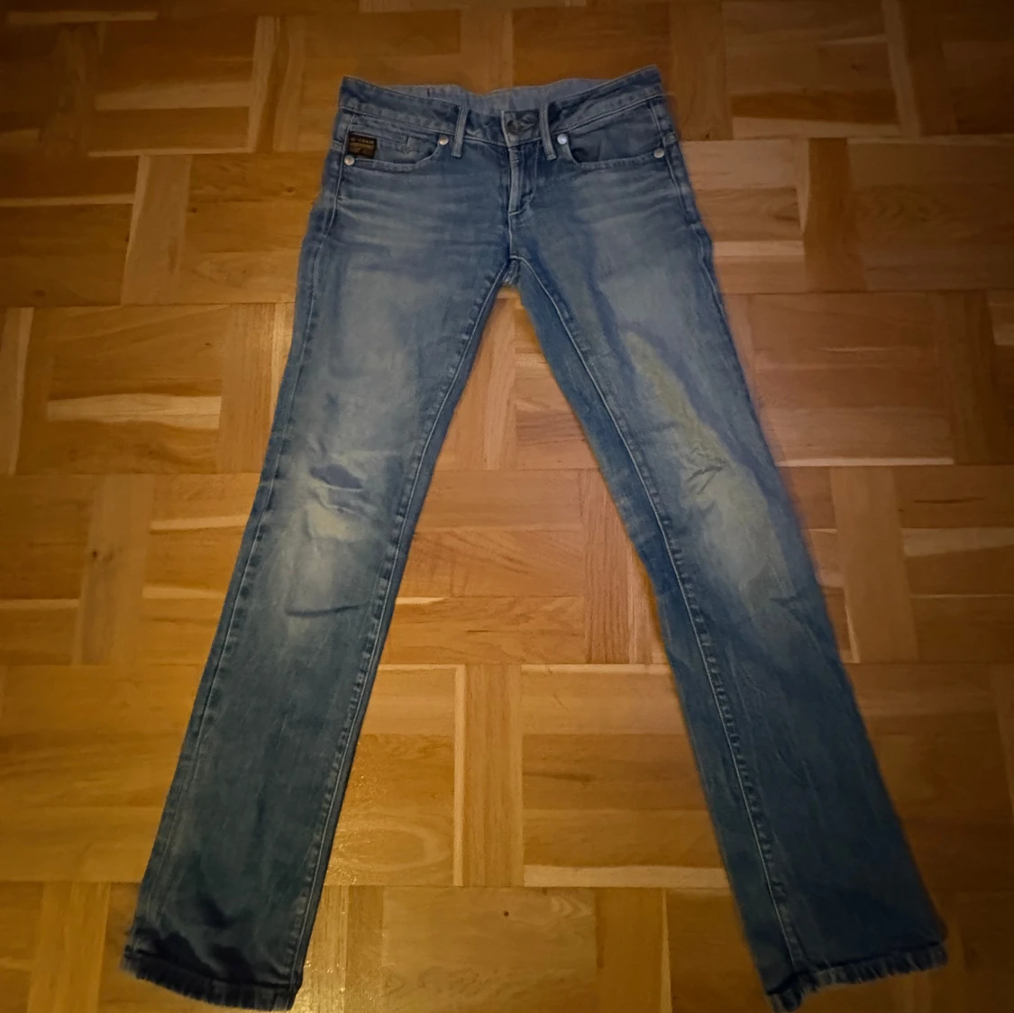 Säljer ett par snygga low waist jeans från G-Star i storlek 28/32 passar (XS-S) midjemått: 40cm, innerbenslängd: 77cm🤗