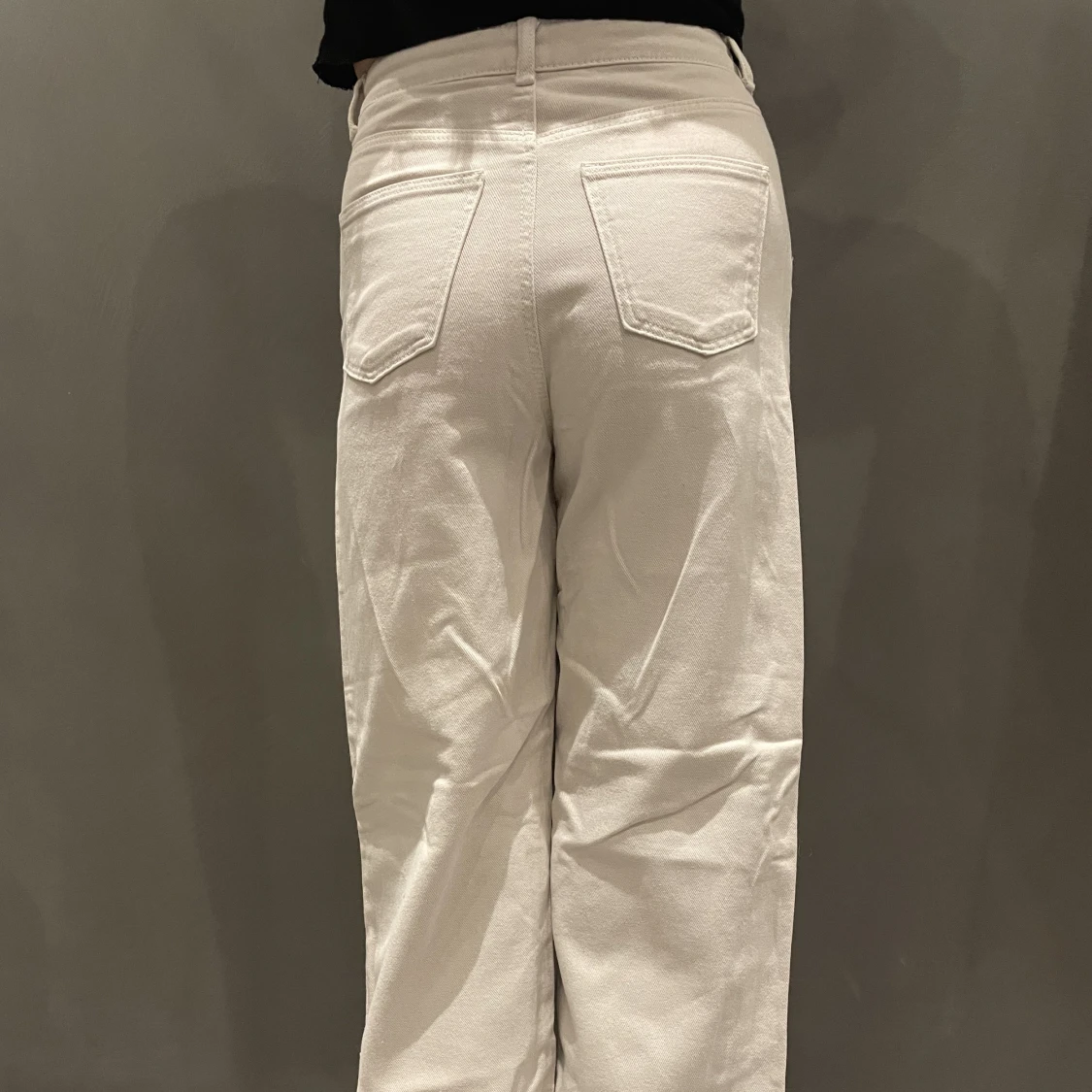 Straight jeans som sitter någon cm under naveln! Lite för korta för min syrra som är 166!🩵 det är resår inuti vilket gör att du kan justera hur de sitter upptill!
