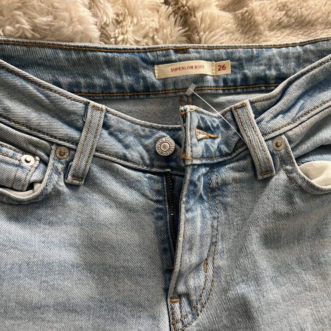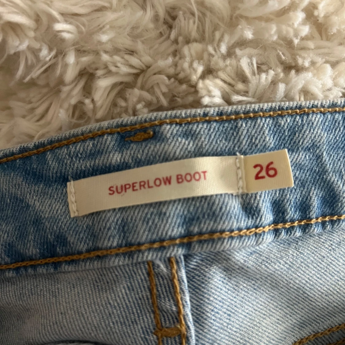 jag säljer nu mina nya Ljusblå Levi's Superlow Bootcut jeans. jag köpte dom för en vecka sen och har aldrig använt dom, jag testade inte dom i butiken och råkade köpa fel storlek. har tyvärr inget kvitto, min mamma har det men hon är inte i Sverige just nu !!