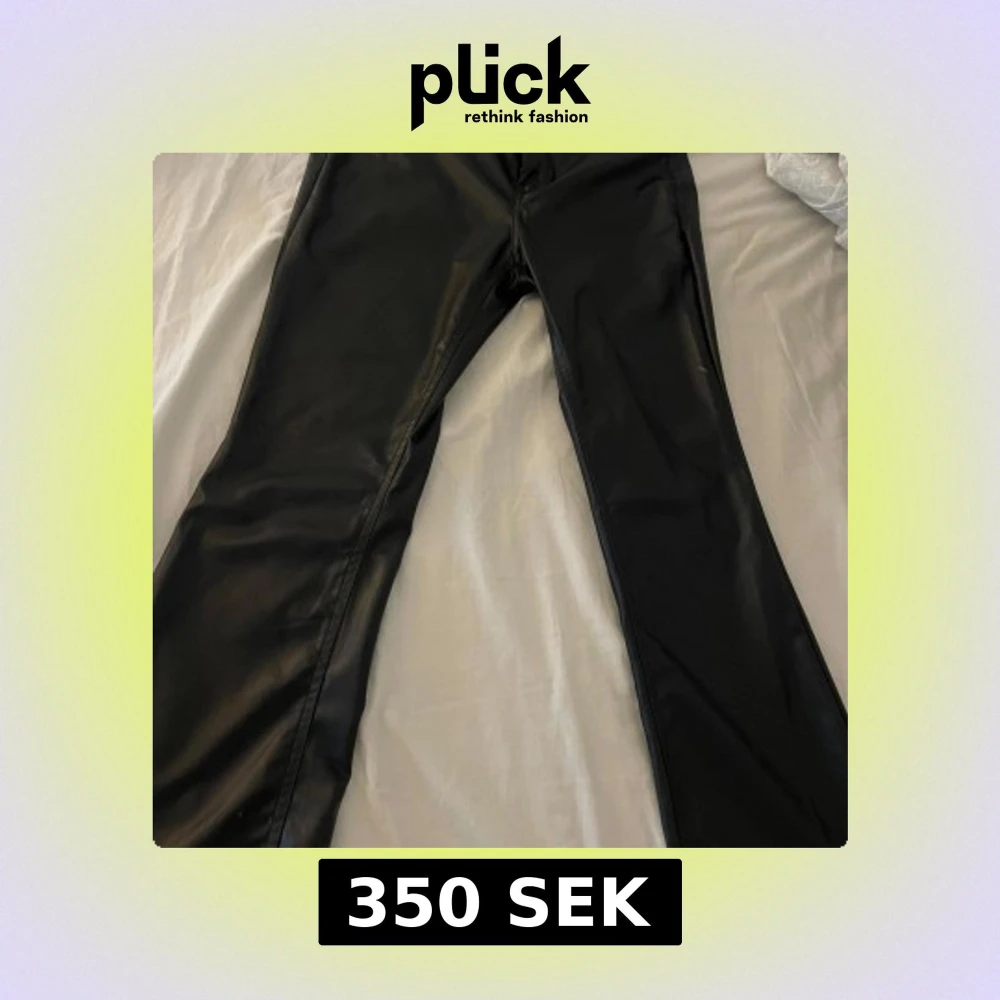 Säljer dessa superrrr snygga skinn/lack byxor från H&M sitter så snyggt på och aldrig använda! Jag är 173 och dom är perfekt längd för mig💕