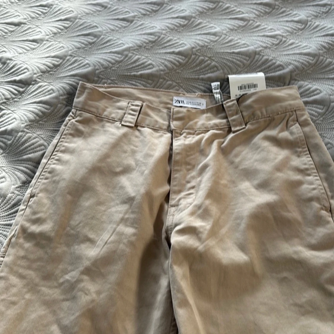 Beige chinos från Zara med raka ben. Byxorna är mid till Low- rised. Byxorna är helt nya med prislappen på.🌸