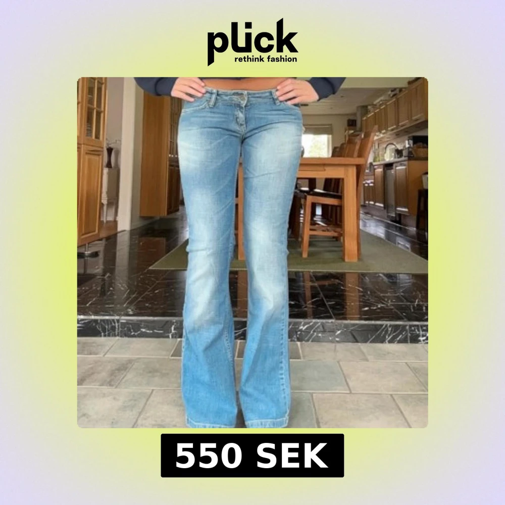 Snygga blå jeans med bootcut-modell och ljus tvätt. Klassisk femficksdesign, låg midja och lätt slitna detaljer framtill och baktill. Perfekta för dig som gillar en avslappnad men trendig look. Från only