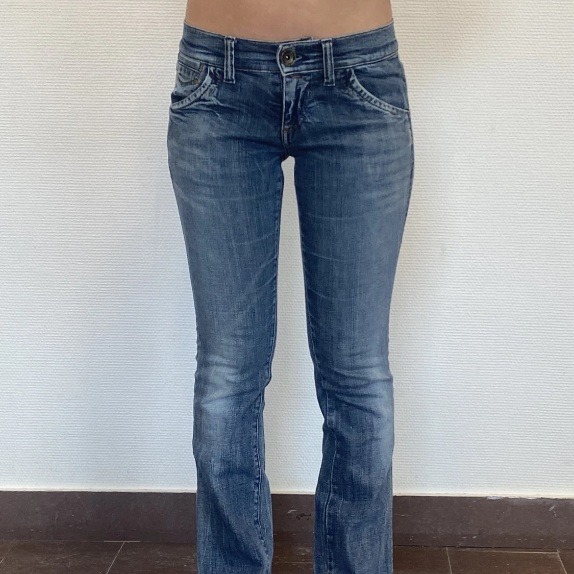 Lågmidjade Miss sixty jeans. De är en fin blå färg som passar till allt med en flare passform och sitter som en smäck! Midja: 72 cm Längd: 92 cm Innerbenslängd: 75 cm