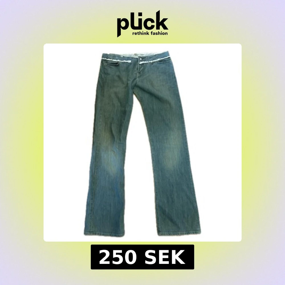 Midjemått 43cm Innebenslängd 87cm Snygga lågmidjade jeans köpta på Etsy. Passar större storlekar. Kontakta mig vid frågor☺️