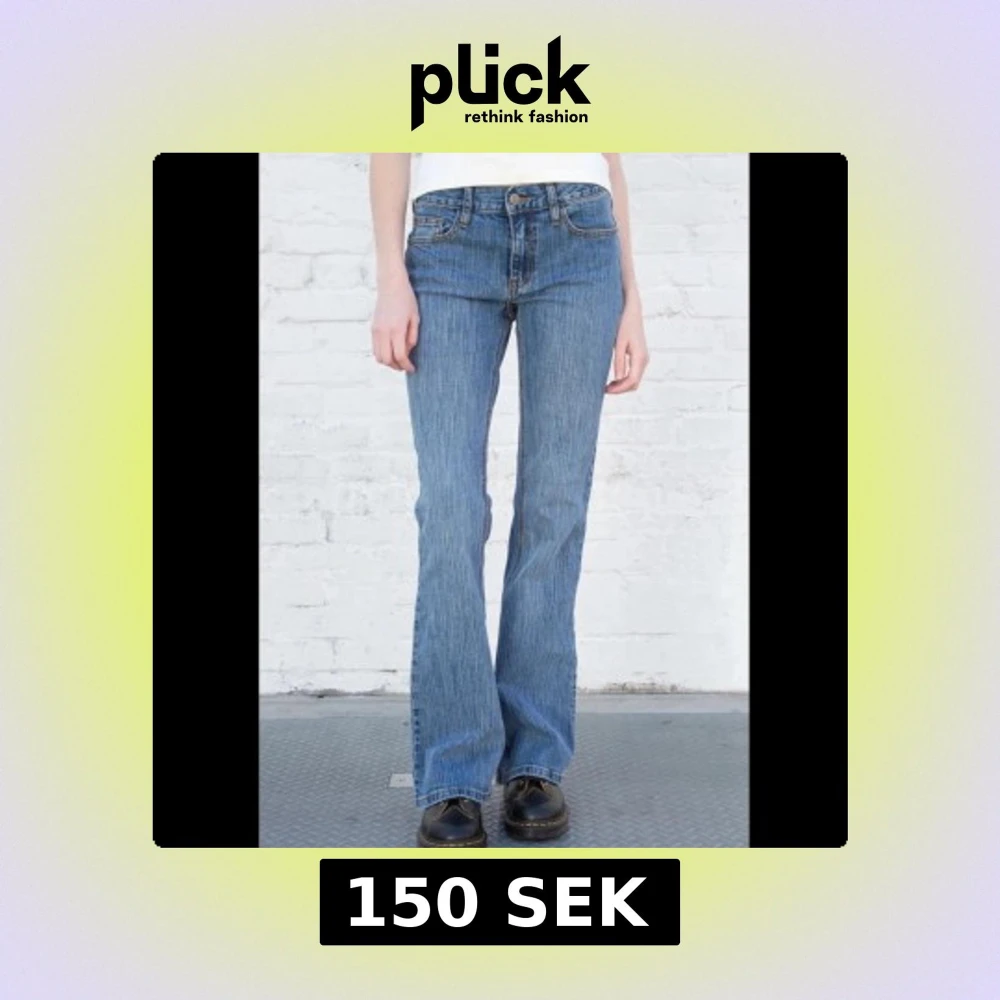 Brandy Melville ”Brielle 90s jeans” jeans i blå tvätt med bootcut passform. Jeansen har fem fickor, knapp och dragkedja framtill samt subtila sömmar. Perfekt för dig som gillar retrovibbar och vill ha ett par jeans med lite utsvängda ben.