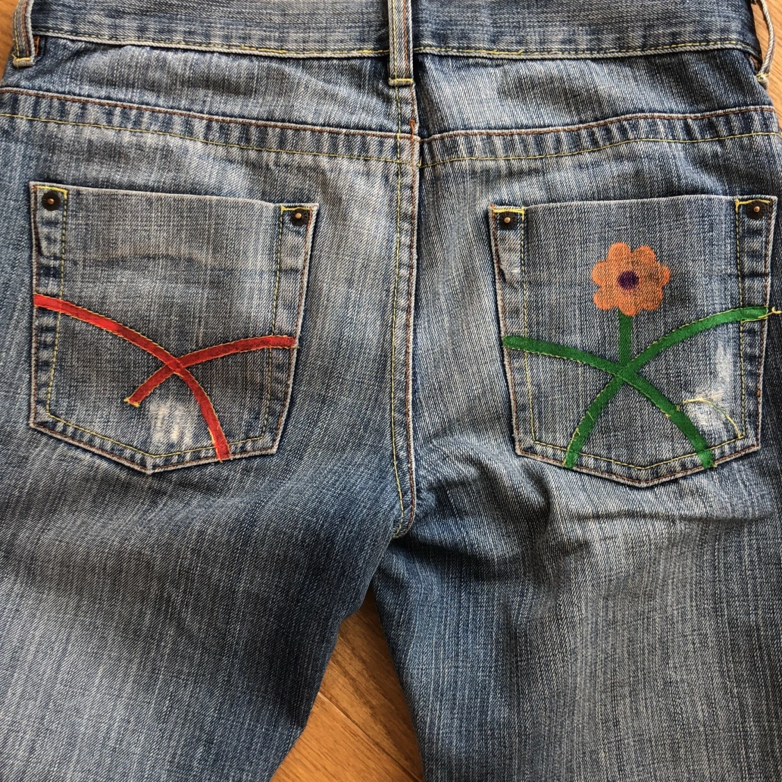 As balla jeans me coola detaljer på fickorna! 🤩🤩🤩😍 de är lite korta på mig som är 165:)