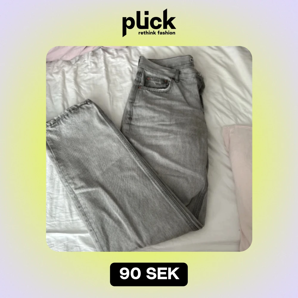 Snygga raka ljusgråa jeans med medelhög midja från Gina Tricot, använda få gånger, lite slitna nere vid fötterna. Jag är 162,5 cm lång.