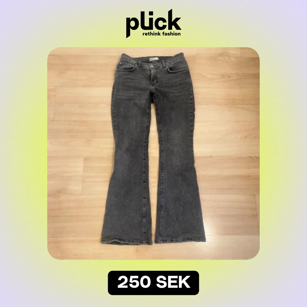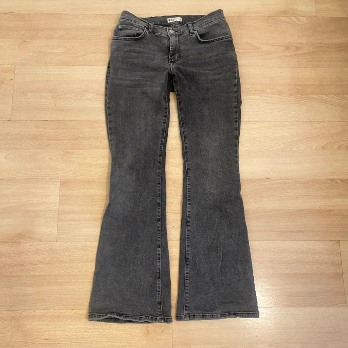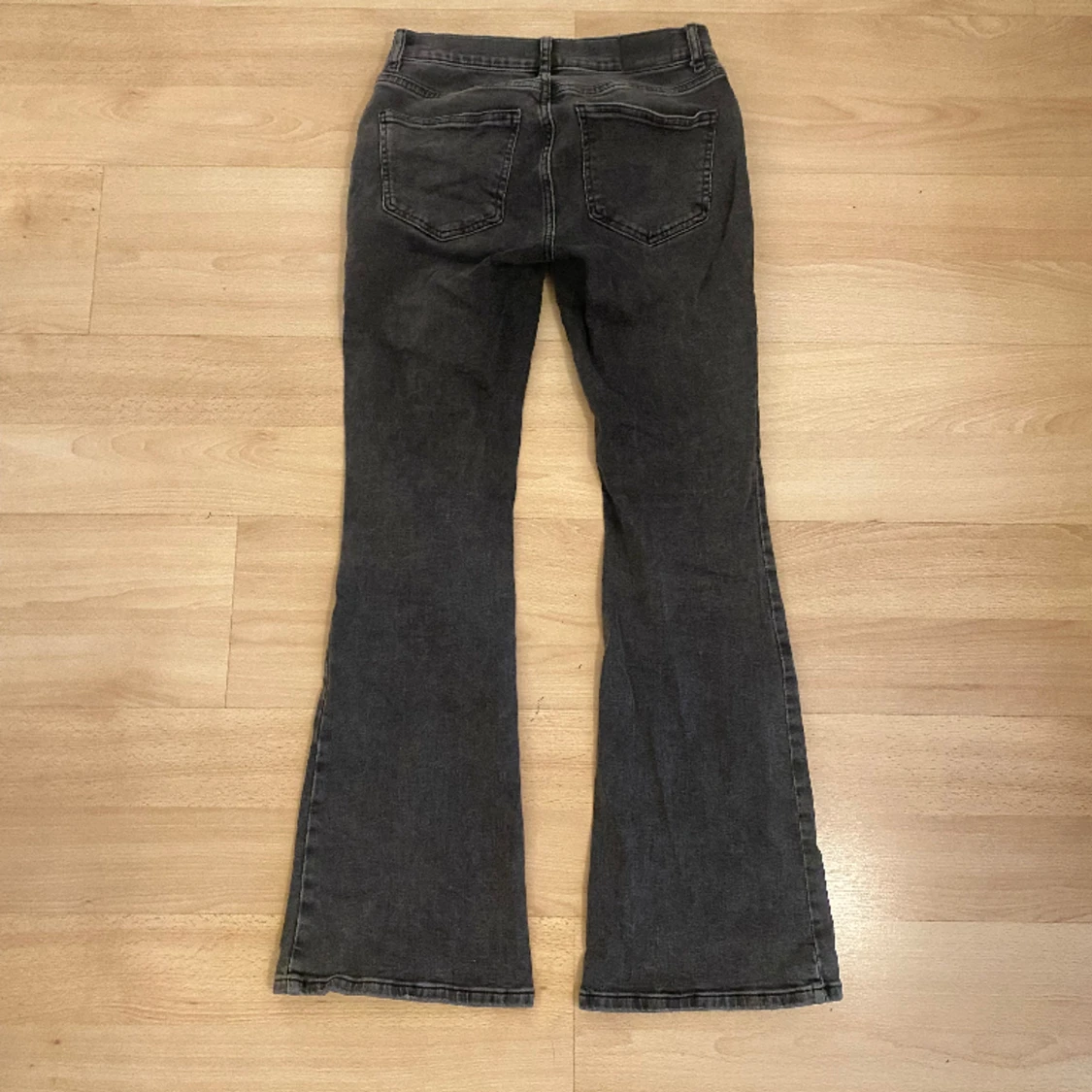 Gråa flared lågmidjade jeans från gina tricot som är lite för korta för mig