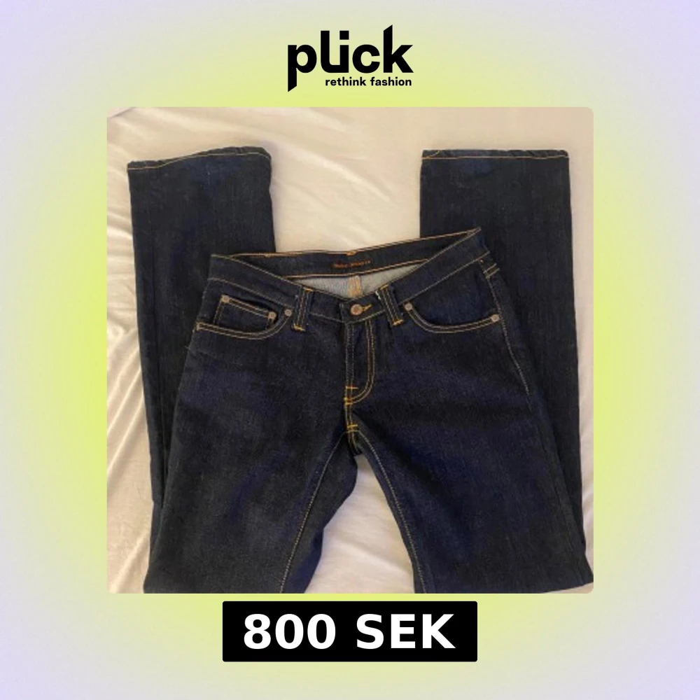 Mörkblå bootcut jeans i storleken 29/34. Märket är ”Nudie jeans co”