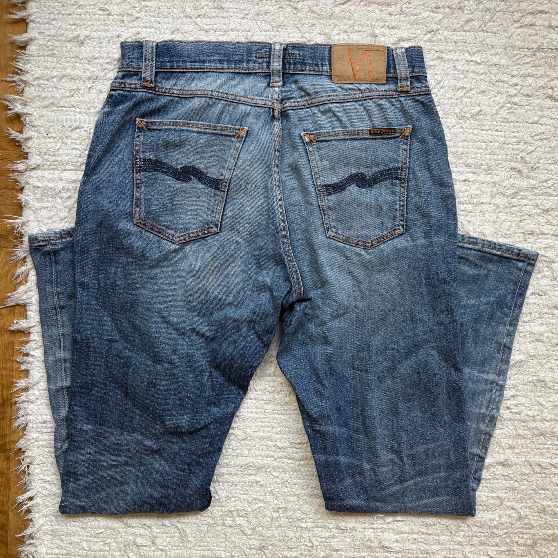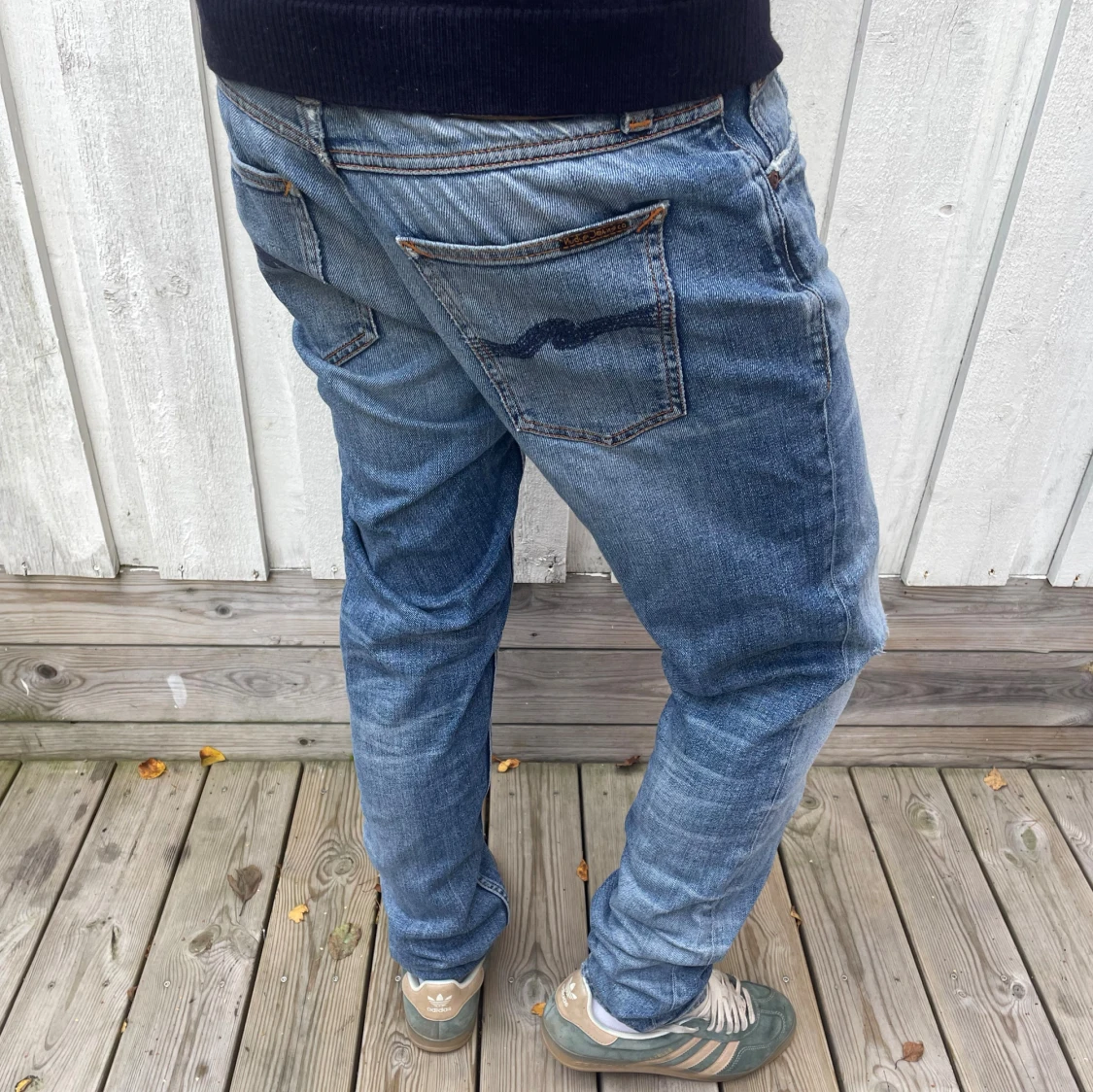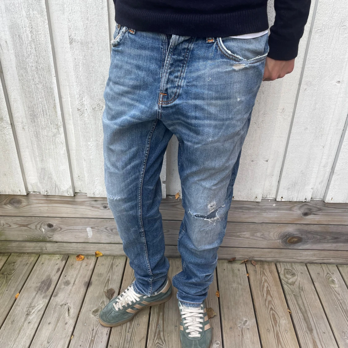 Säljer nu dessa sjukt unika nudie jeans i en perfekt comorway enligt mig!!🎨| Slitningarna är mycket snyggt gjorda och fantastiskt snygga!!🪡| Båda framfickorna har flera lagningar men fyller fortfarande sina syften!! | Modellen kallas ”Steady Eddie” och är perfekt till hösten då den sitter mer rakt!!🌤️🍁| Storlek 29/32 på lappen men passar 31/32! | Hör gärna av dig!!✌🏻👑
