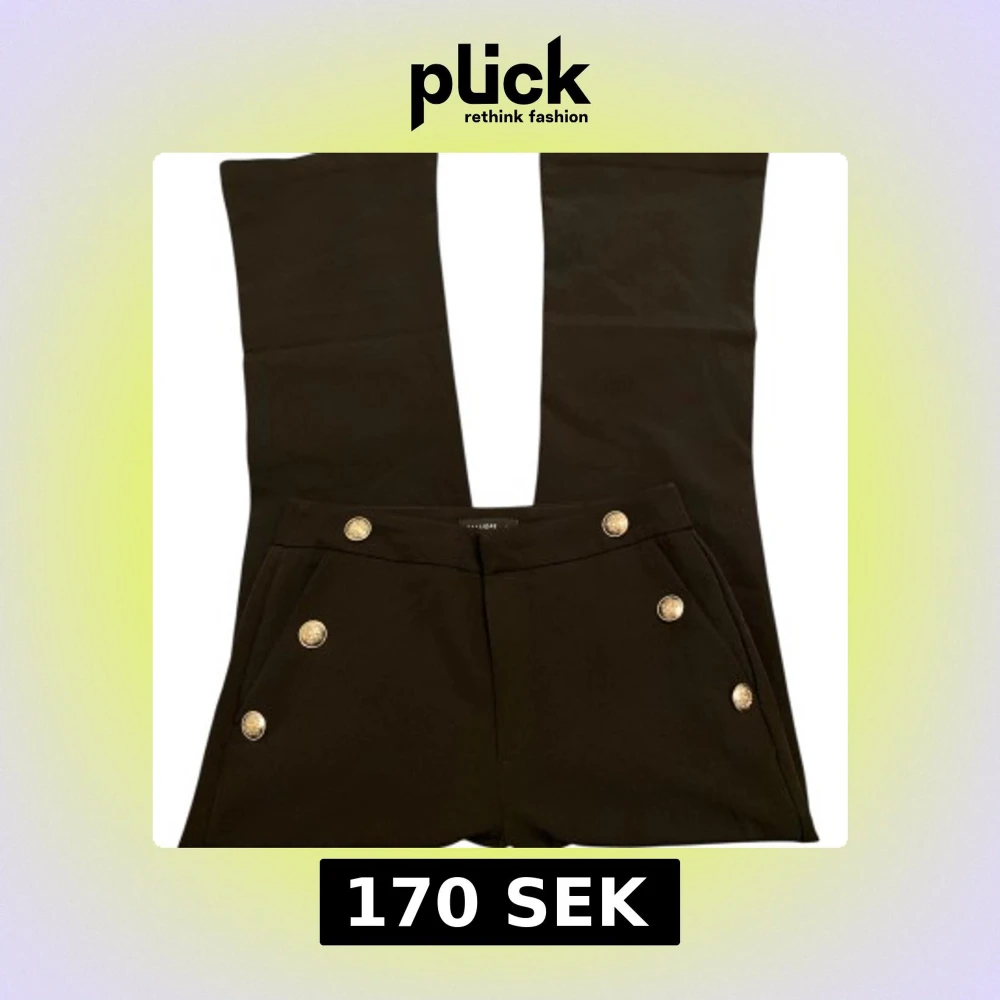 Svarta bootcut kostymbyxor från Calliope med snygga silverknappar framtill. Byxorna har hög midja och klassisk bootcut passform. Storlek Xs-S.