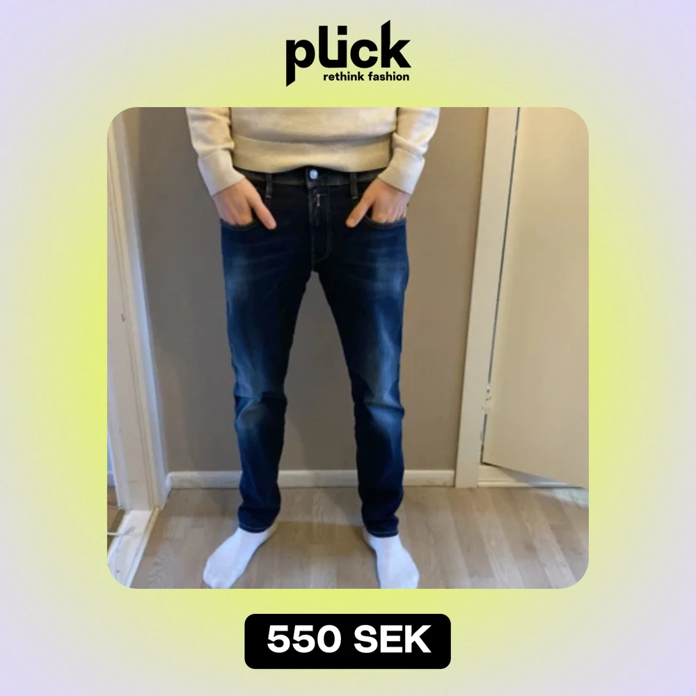 Ett par mörkblå Replay anbas jeans i storlek 31/30