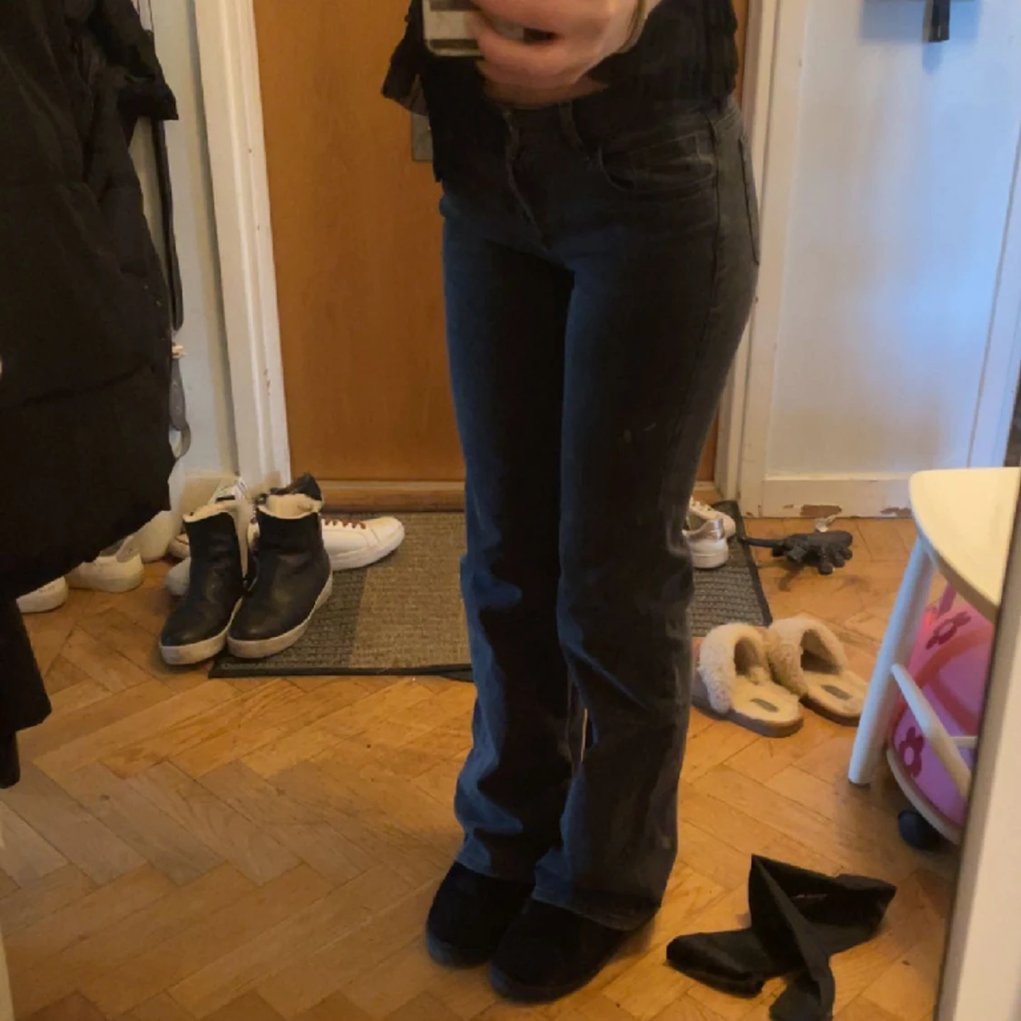 Nästan helt oanvända mörkgråa lågmidjade jeans från HM, skriv om ni har nåra frågor❤️🤗