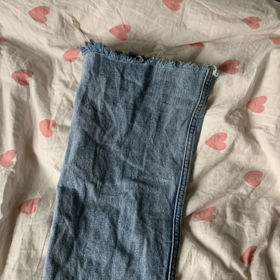 säljer dessa john gavi jeans då dom blivit för små på mig, köpte second hand för 130 kr, vet it storleken men midjemått rakt över: 35 cm | innerbenslängd: 74 cm ish | klippta där nere för att dom var för långa, en liten defekt (se bild 3)