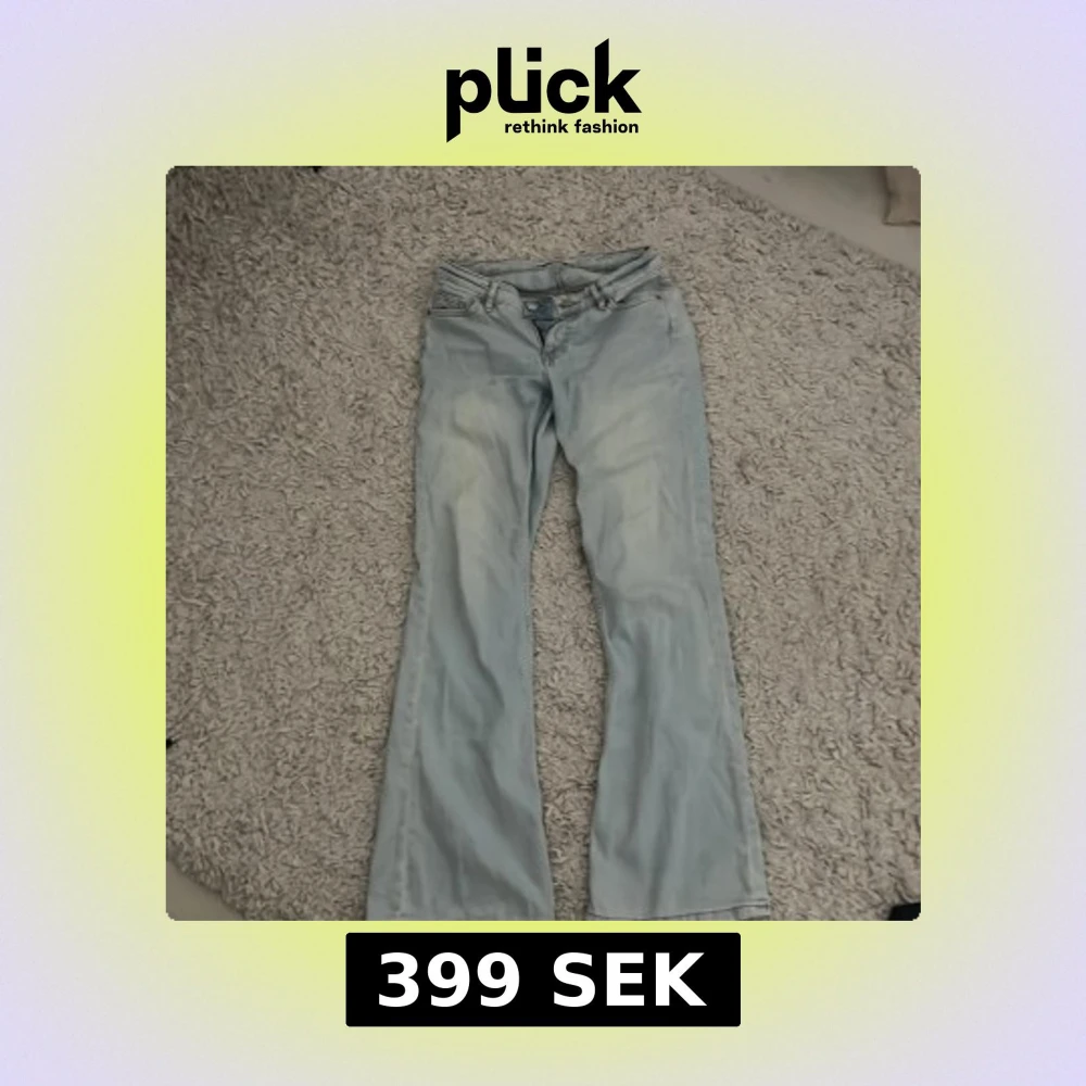 Lågmidjade ljusblå jeans utan defekter, använda fåtal gånger och helt utan defekter, nypris 500kr. Storlek 34 men passar också en 36