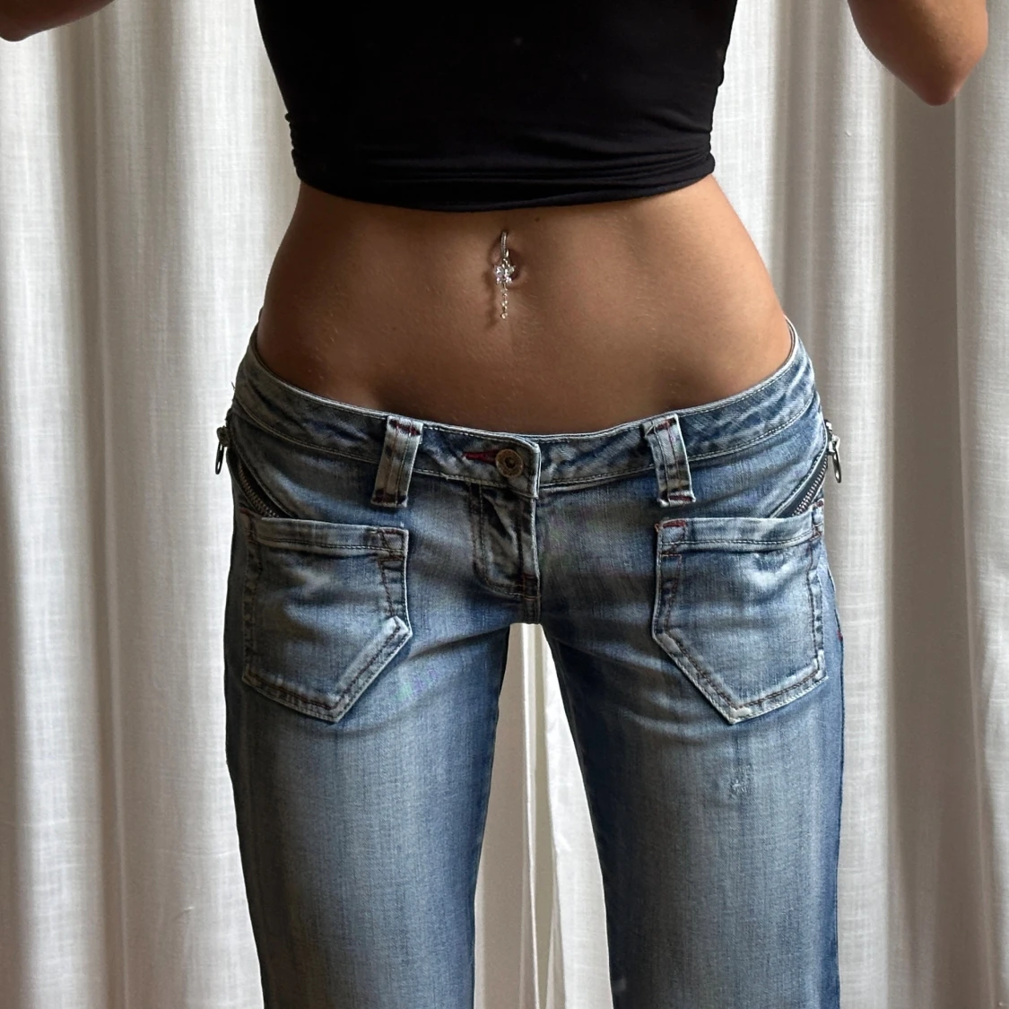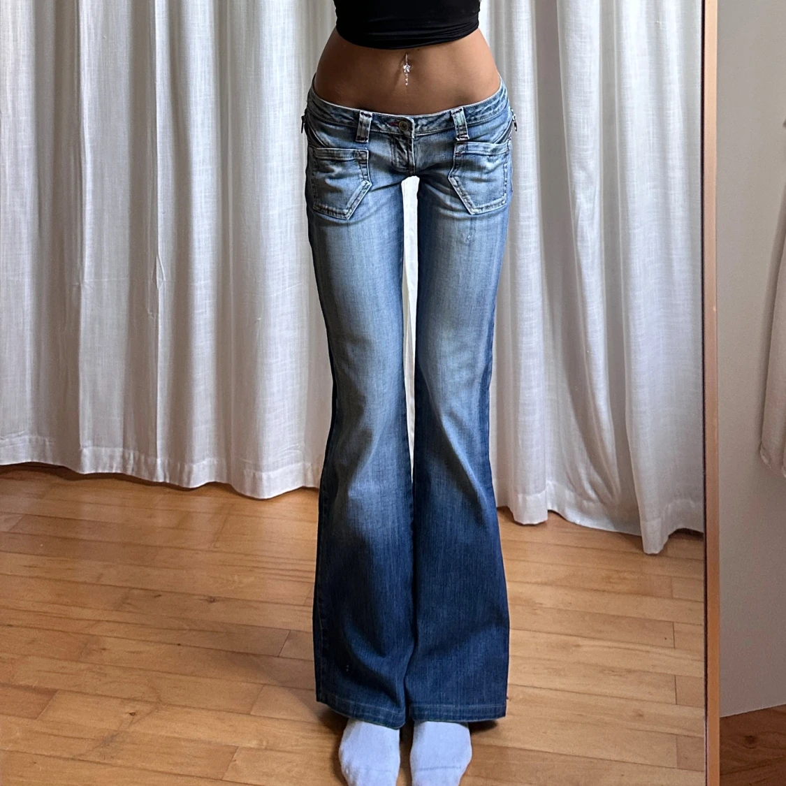 Midjemått: 38 Innerbenslängd: 77 Grenhöjd: 16 Jag är 165cm⭐️