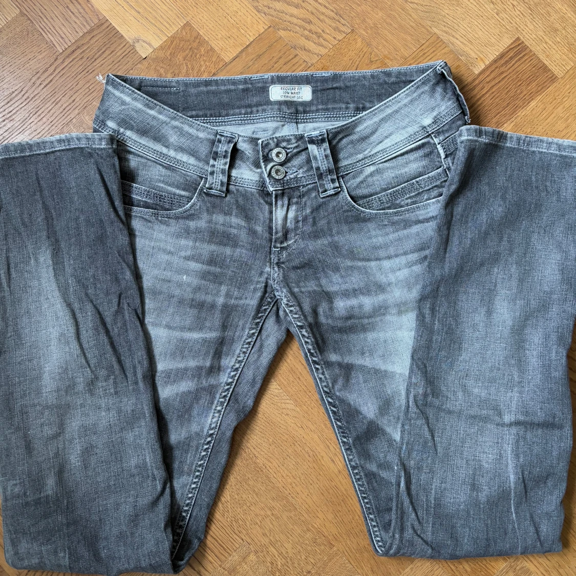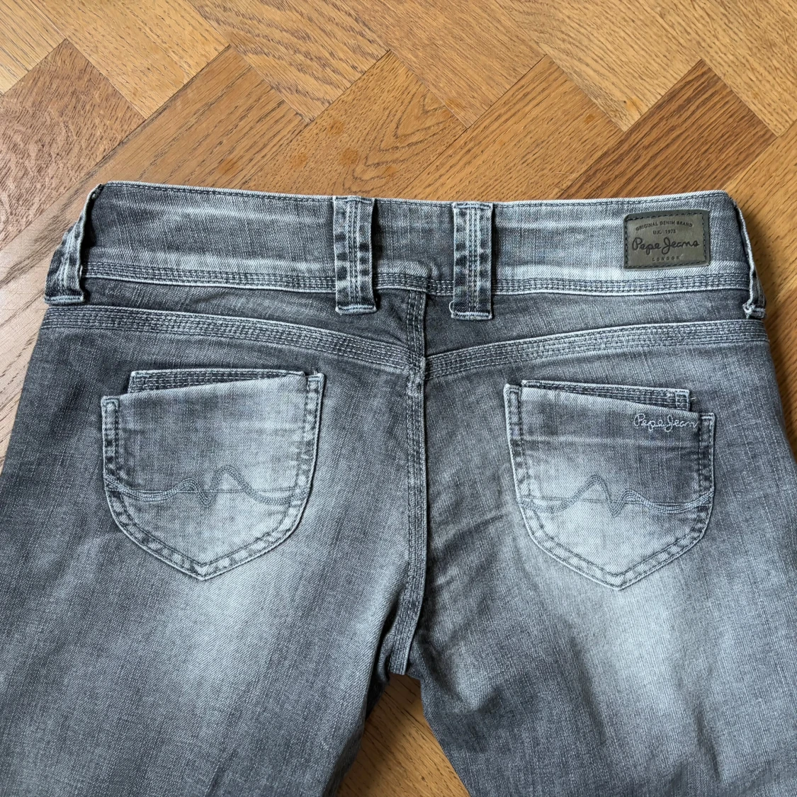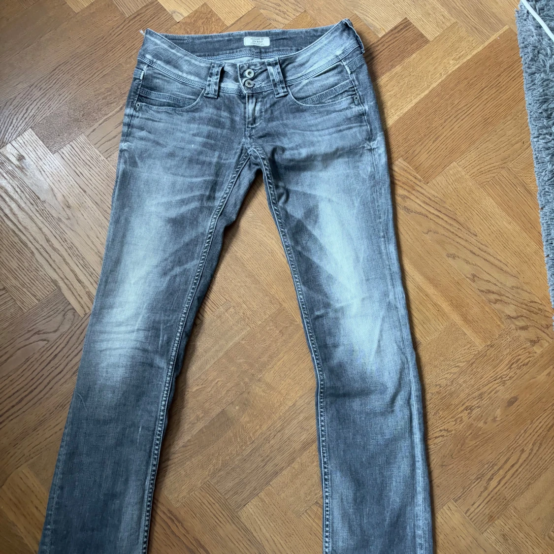 Lågmidjade gråa jeans från pepe. Raka/straight fit. 29/32, skulle säga att de passar S/M. Säljer då de var för små för mig. Hör av dig för mer bilder/mått.