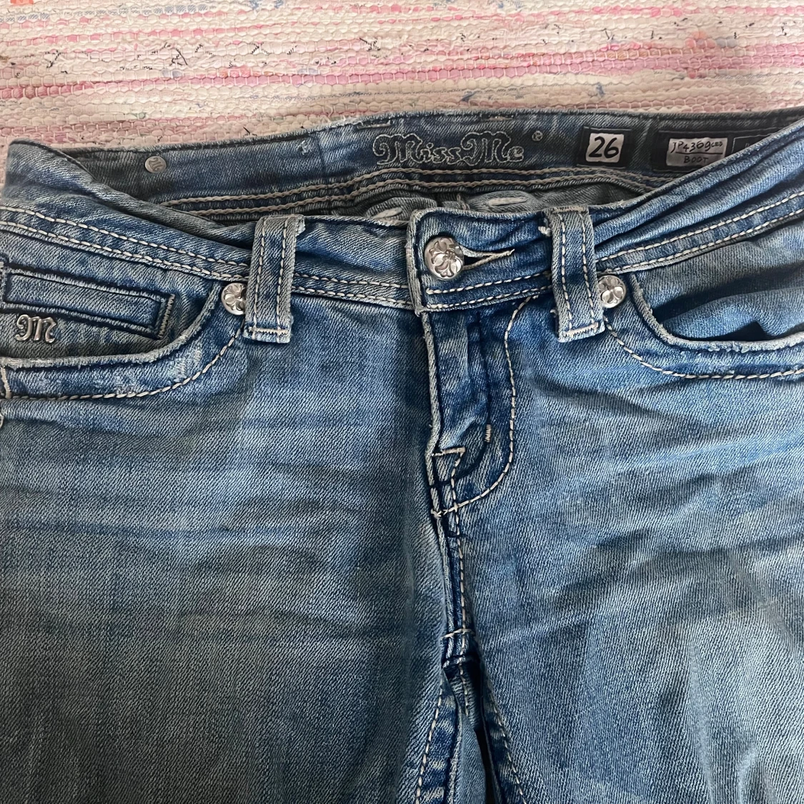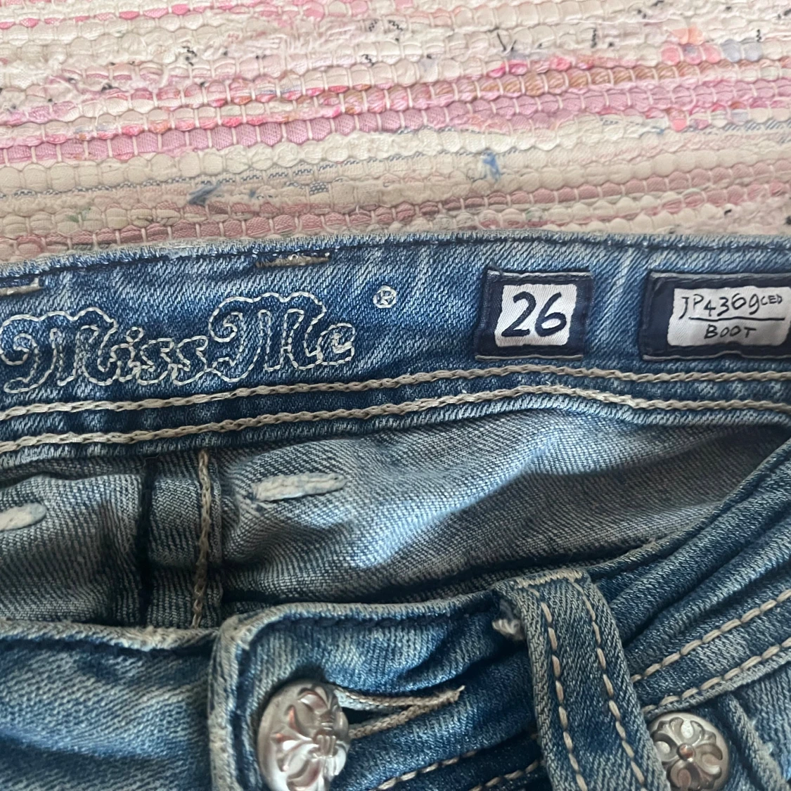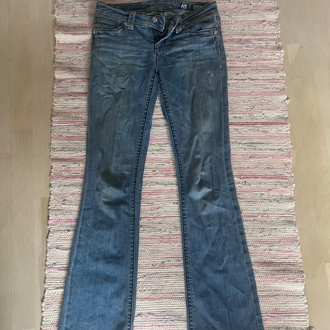 Säljer ett par skit snygga ljusblå jeans från Miss Me med snygg bootcut-modell och låg midjade. De har inga defekter förutom en knapp som saknas på byxettiketen där bak men det märks aldrig. Skriv om du har frågor eller vill ha mer bilder.🩷😊