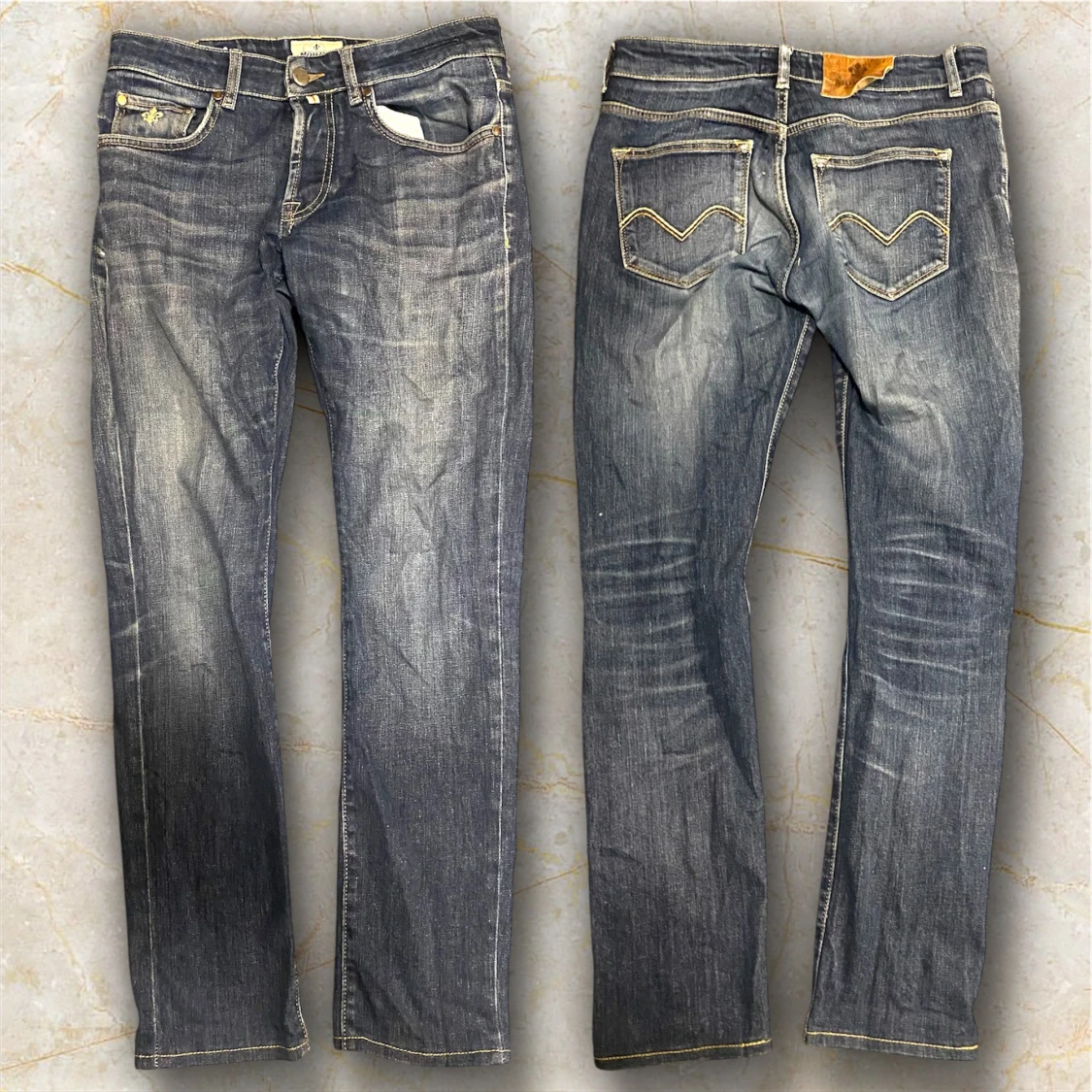 Feta jeans från Morris. Dock är båda framfickorna trasiga och går inte att använda men det går såklart att sy ihop. W29 L32. Kort i storleken