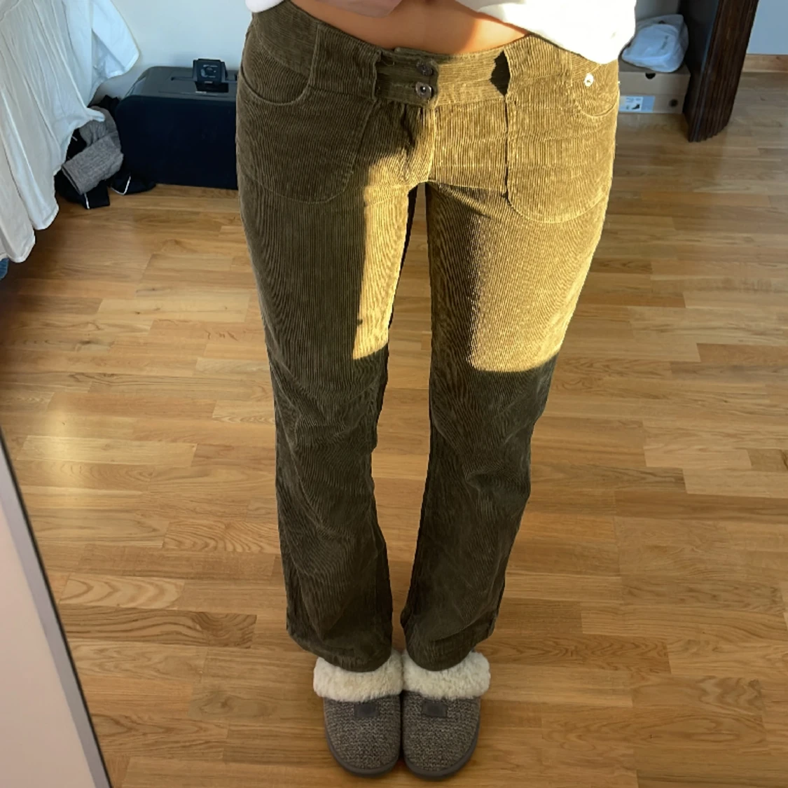 Så snygga manchester byxor som tyvärr är lite korta för mig (jag är 177cm) 💕 Midjemått:74 cm Innerben: 77cm