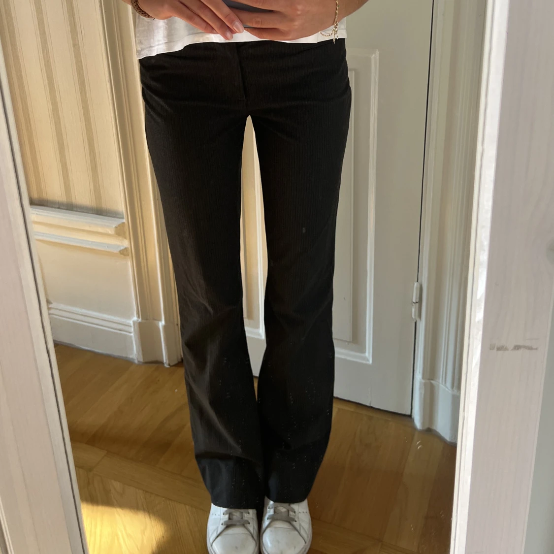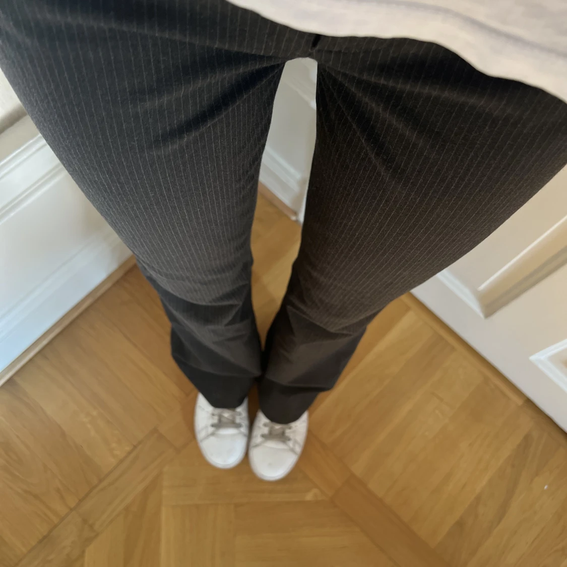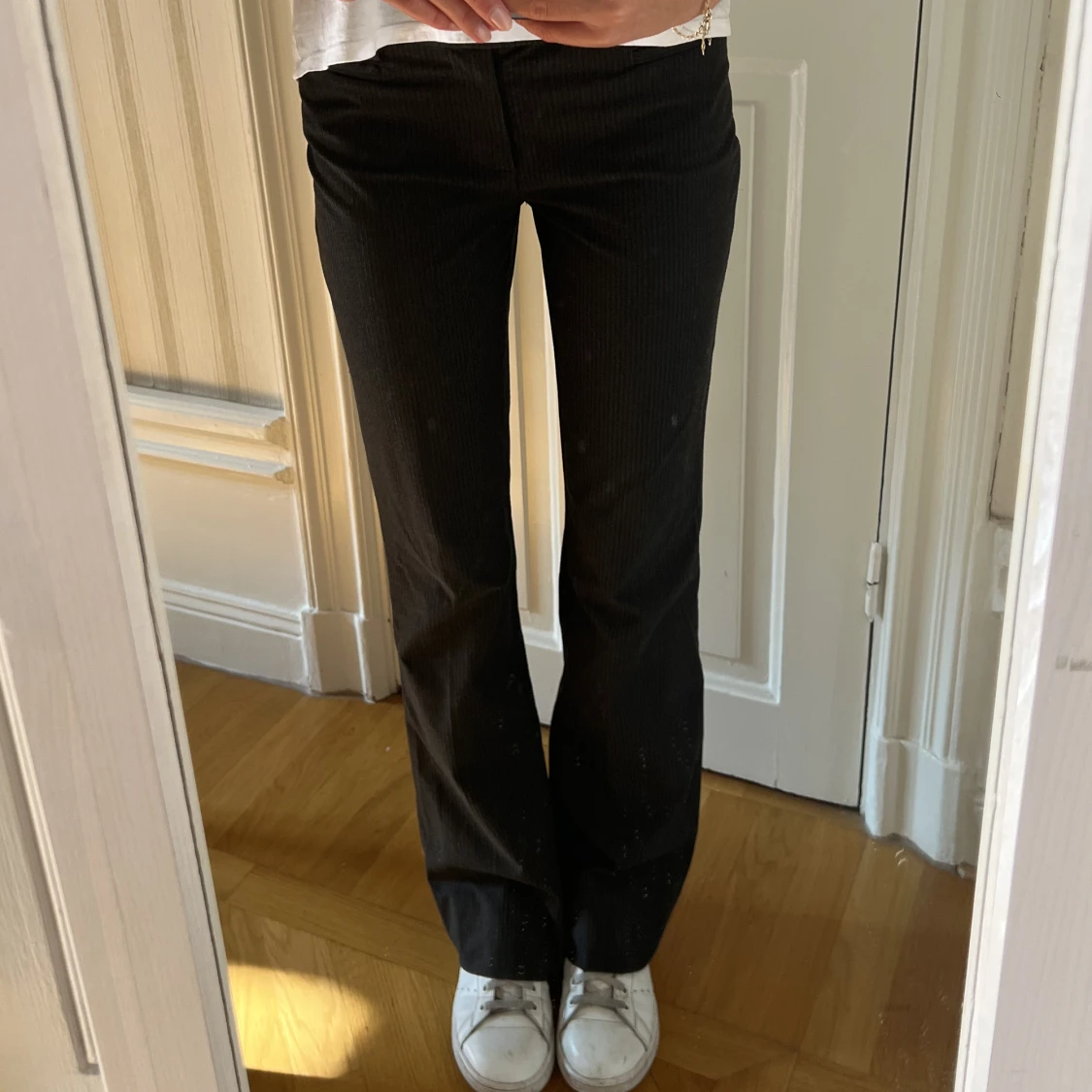 Sjukt snygga kostymbyxor i mörkgrå/svart färg med tunna tänder. Storlek 34. Byxan är i perfekt skick och har inga defekter, köpta från GAP.