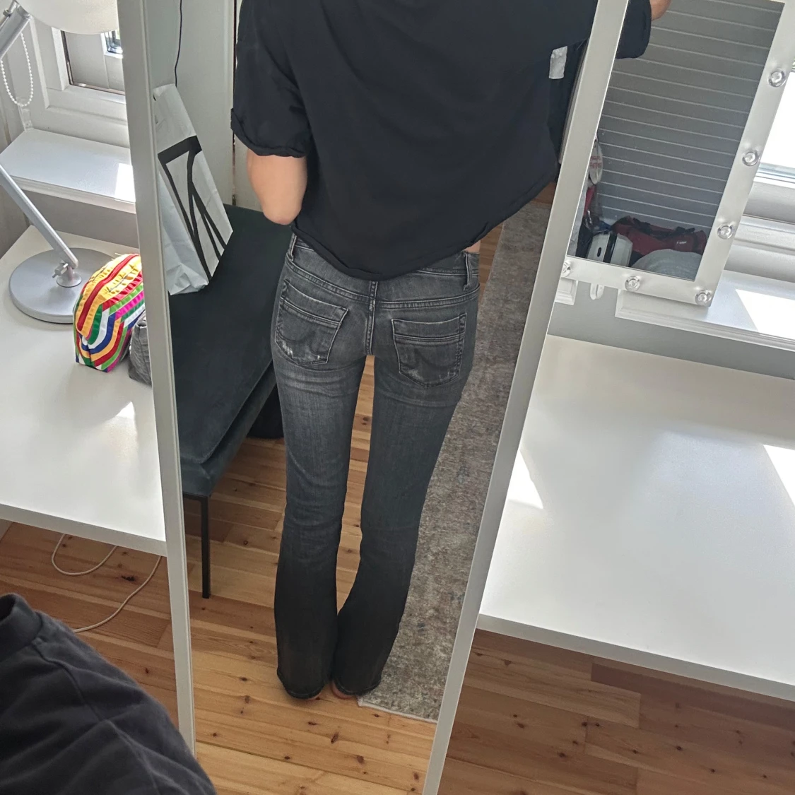 Svarta / grå trendiga LTB jeans med slit! (Modellen valerie) Dom är bootcut! Jag är 168 och dom passar mig PRECIS, skulle säga att dom passar bättre till ngn kortare! W26 & L30