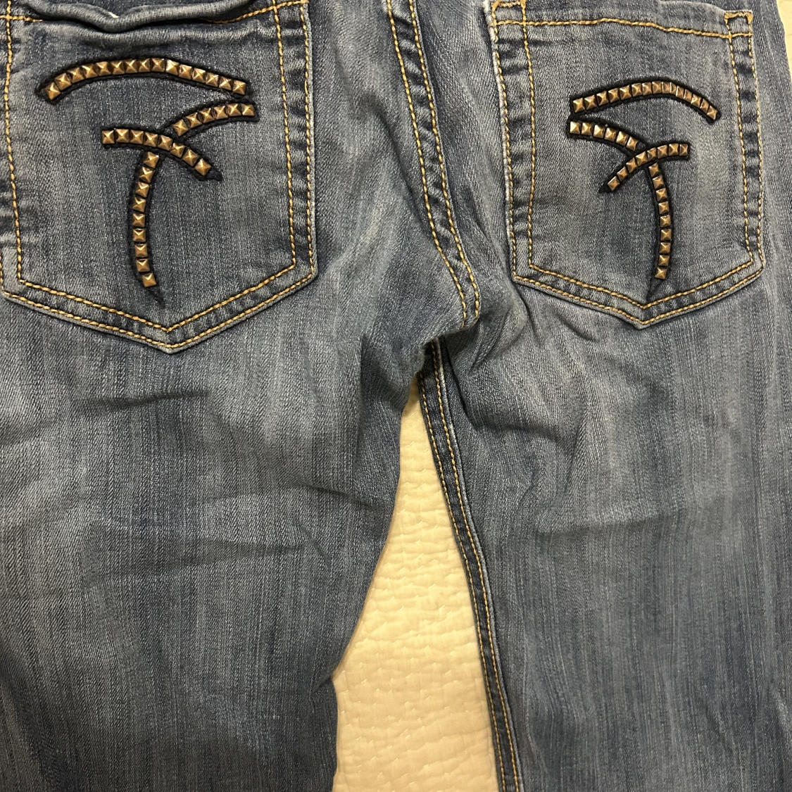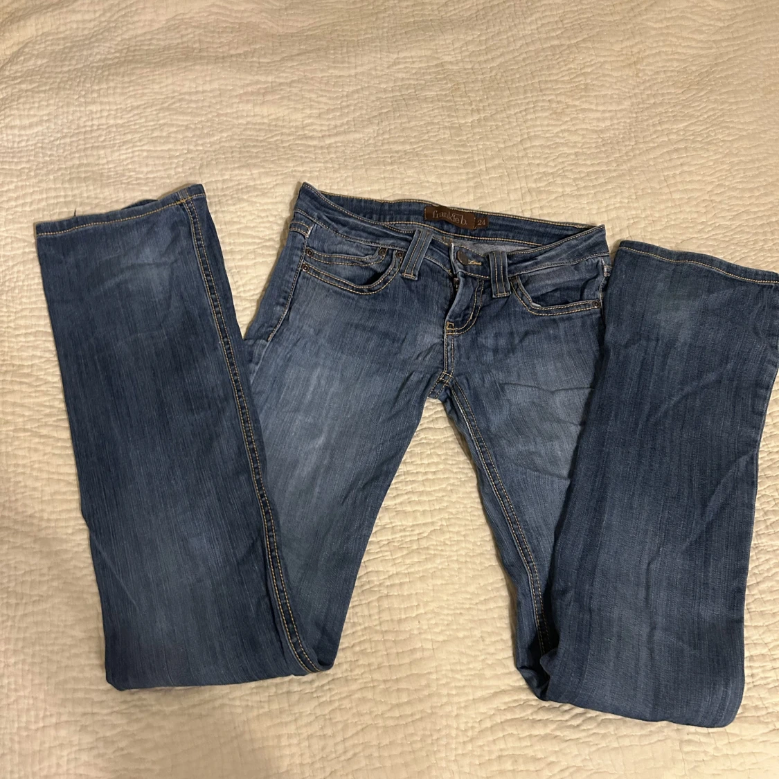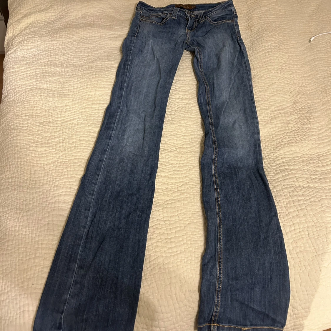 Snygga mörkblå jeans som jag säljer då de inte kommer till användning längre. Har så snygga fickor! Är stretchiga så skulle säga att de passar 25-26. Kom privat för fler bilder