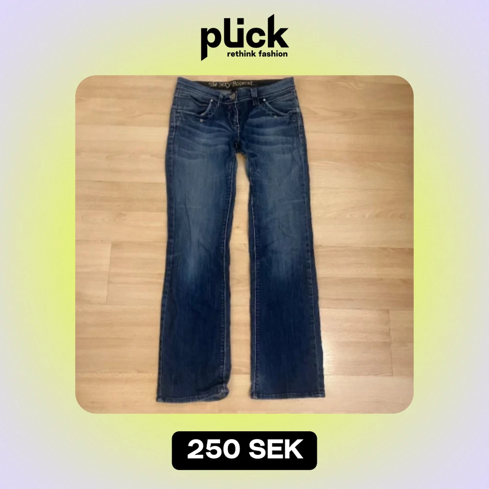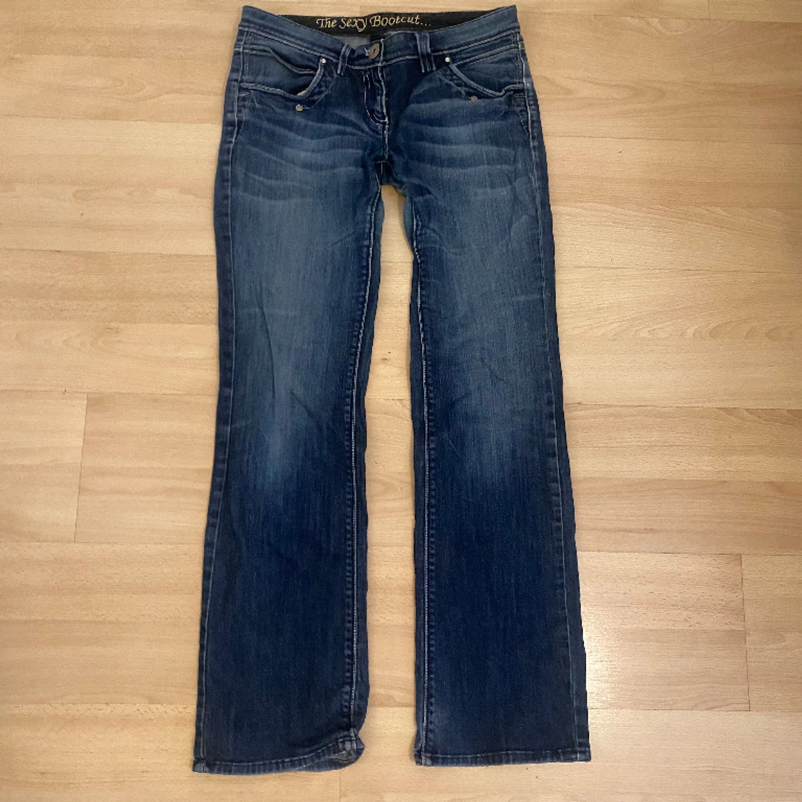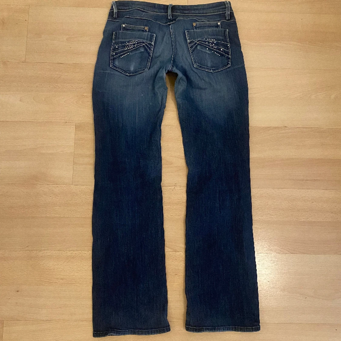 super snygga lågmidjade bootcut jeans med små diamanter på fickorna. lite slitna men inget är sönder