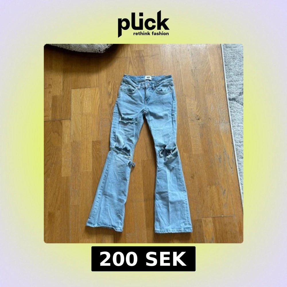 Säljer mina bootcut jeans som är väldigt lågmidjade då dom är för små för mig. Har gjort hålen själv. Perfekta nu för sommaren ☺️