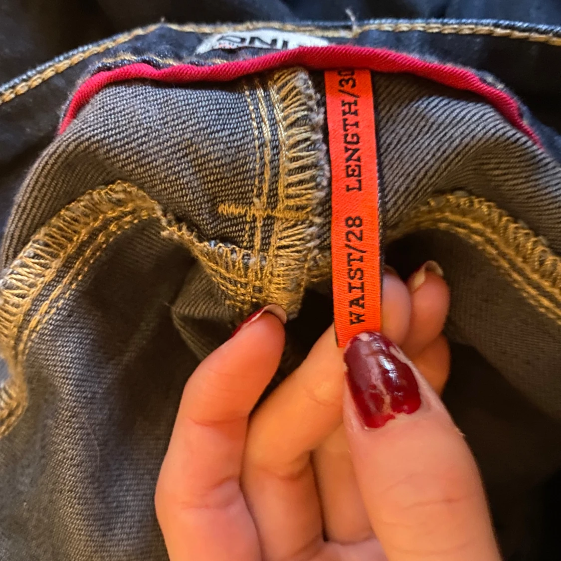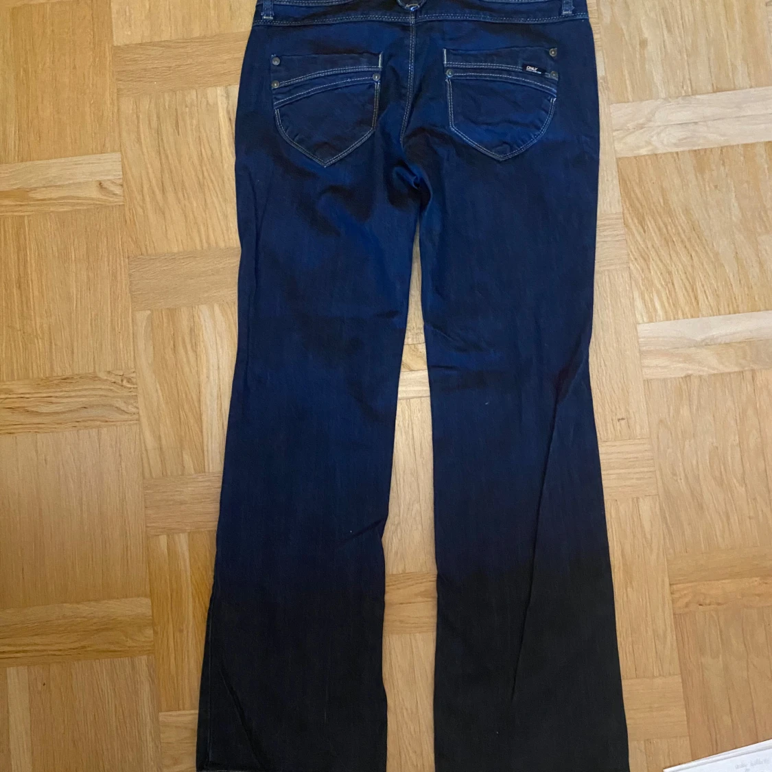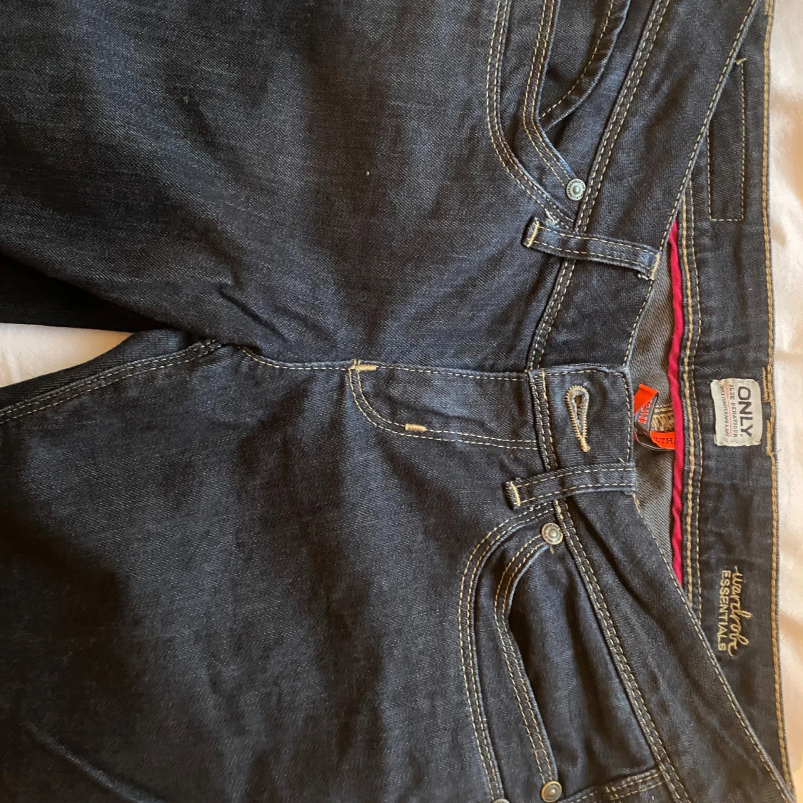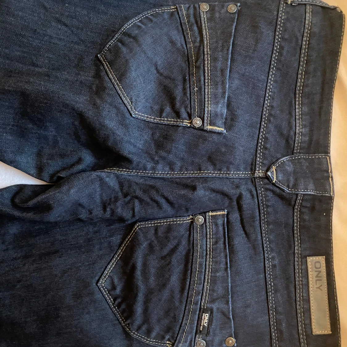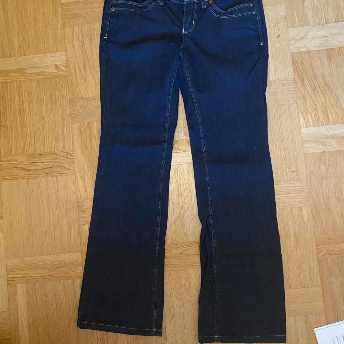 Low waisted jeans i mörk denim. Köpt secondhand men aldrig använts av mig då de tyvärr är för korta för mig som är 178